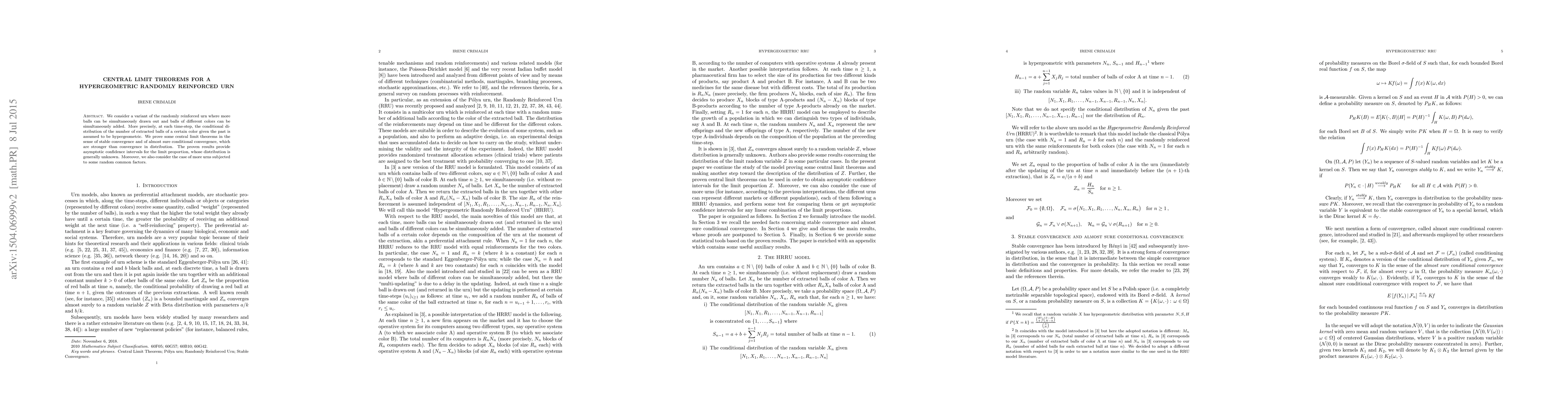 This paper investigates a variant of randomly reinforced urns with hypergeometric reinforcement, where multiple balls of different colors can be drawn and added simultaneously. It proves central limit theorems for stable and almost sure conditional convergence, providing asymptotic confidence intervals for the unknown distribution of the limit proportion. The study also extends the analysis to multiple urns influenced by common random factors.