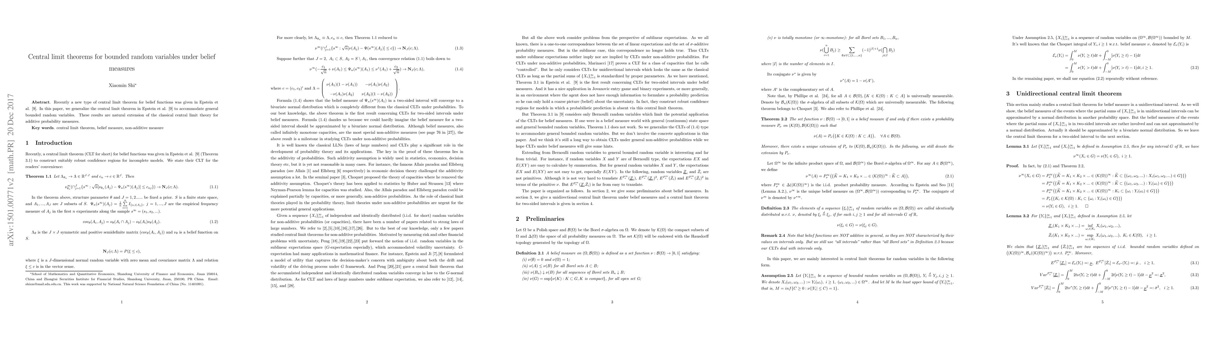 This paper generalizes a central limit theorem for belief functions to accommodate bounded random variables, extending classical theory for additive probability measures.