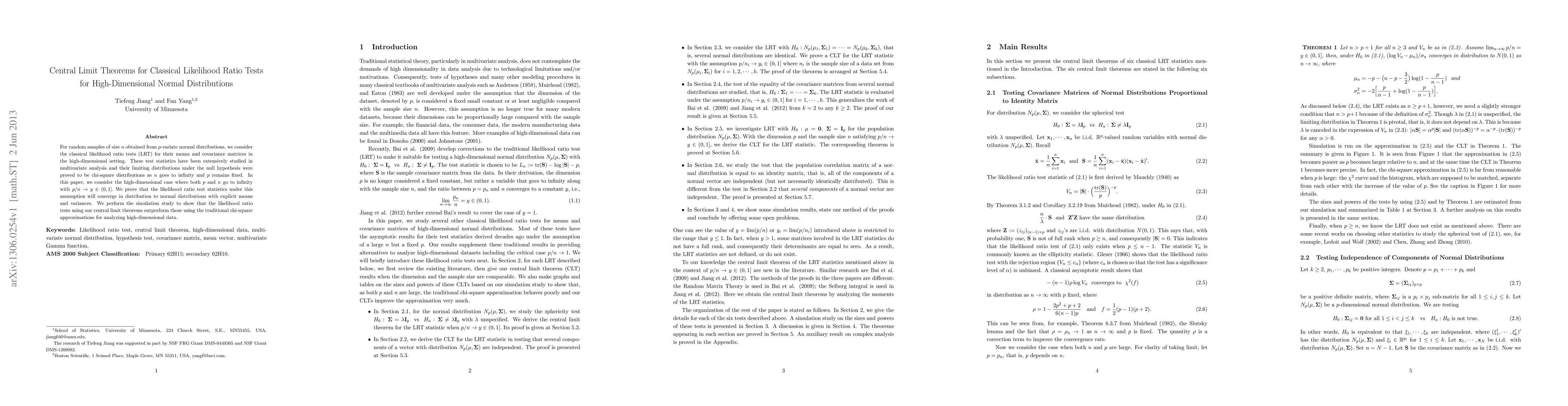 This paper proves that likelihood ratio test statistics for high-dimensional normal distributions converge to normal distributions under the assumption that both sample size and dimensionality grow, with dimensionality scaling sub-linearly to the sample size. Simulation results show improved performance of these tests compared to traditional chi-square approximations.