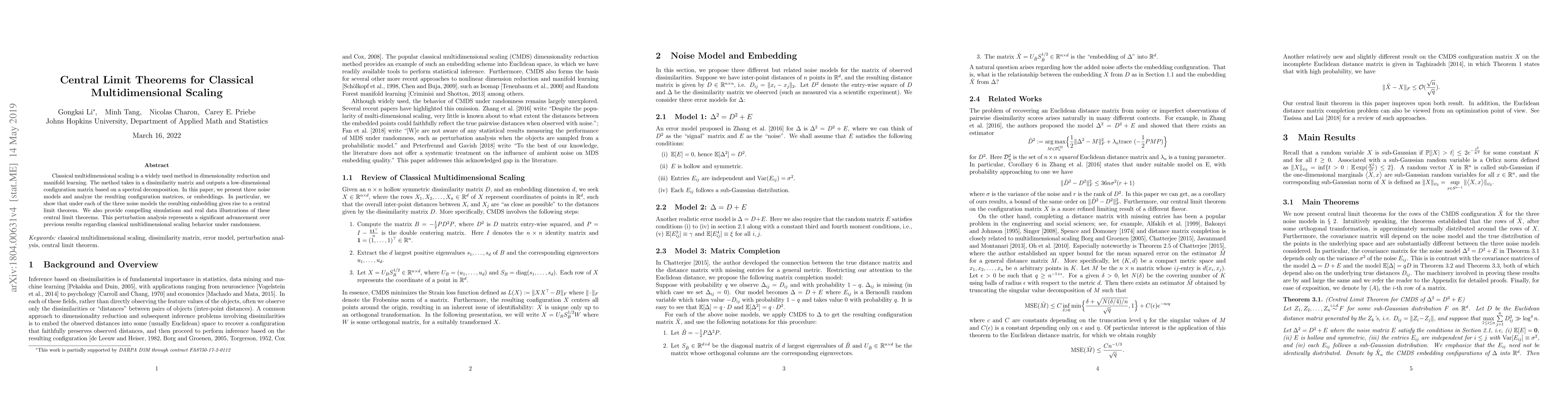 This paper explores central limit theorems for classical multidimensional scaling under three noise models, demonstrating that each model leads to a central limit theorem for the resulting embeddings. The findings are supported by simulations and real data examples, marking a significant improvement over prior analyses of scaling behavior under randomness.