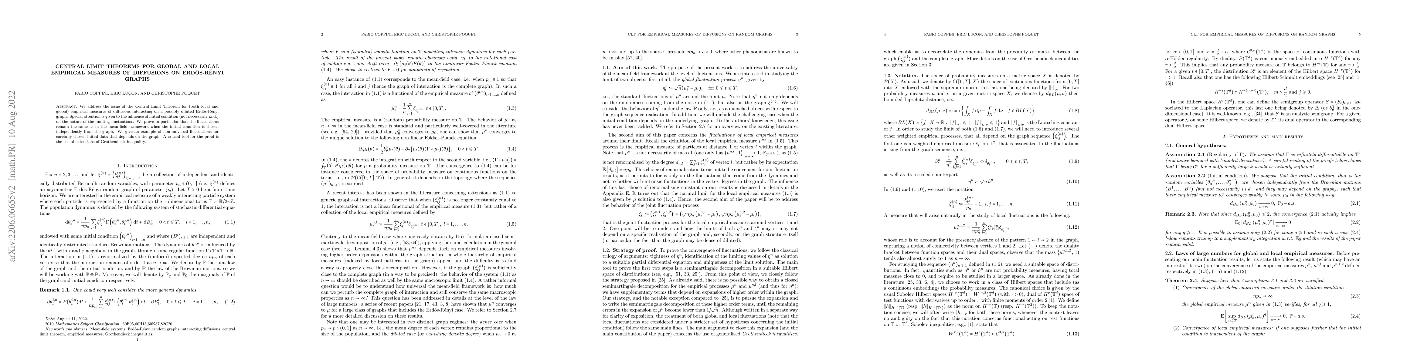 This paper investigates the Central Limit Theorem for empirical measures of diffusions on Erdős-Rényi graphs, showing that fluctuations depend on the initial conditions. The study reveals universal fluctuations when initial conditions are independent of the graph, but non-universal fluctuations for graph-dependent initial data, using extensions of Grothendieck inequality as a key analytical tool.