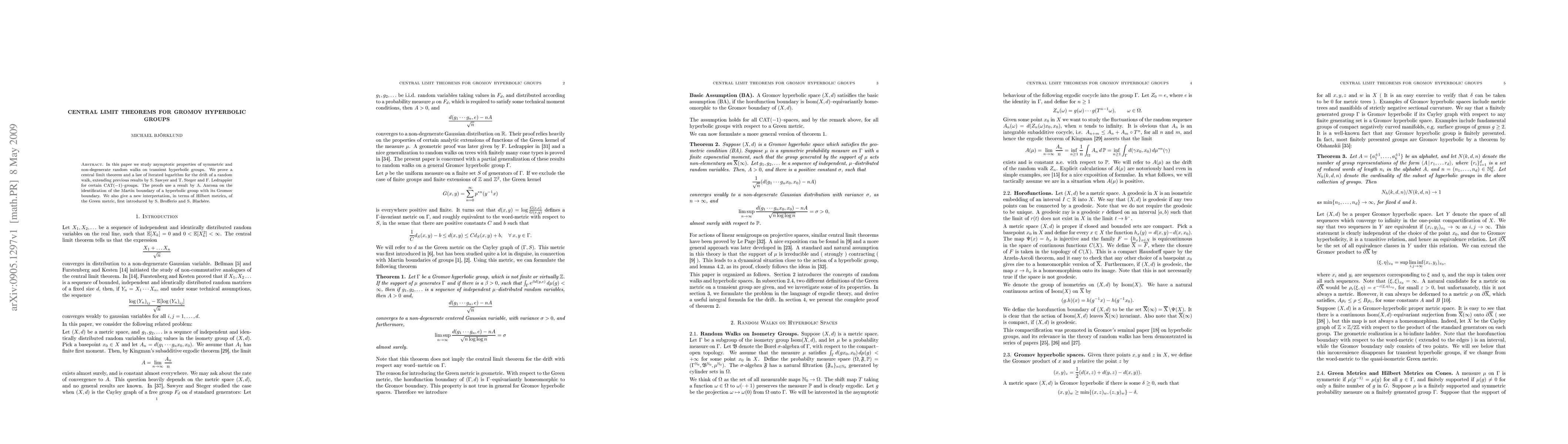 In this paper we study asymptotic properties of symmetric and non-degenerate random walks on transient hyperbolic groups. We prove a central limit theorem and a law of iterated logarithm for the drift of a random walk, extending previous results by S. Sawyer and T. Steger and F. Ledrappier for certain CAT minus one groups. The proofs use a result by A. Ancona on the identification of the Martin boundary of a hyperbolic group with its Gromov boundary. We also give a new interpretation, in terms of Hilbert metrics, of the Green metric, first introduced by S. Brofferio and S. Blachere.
