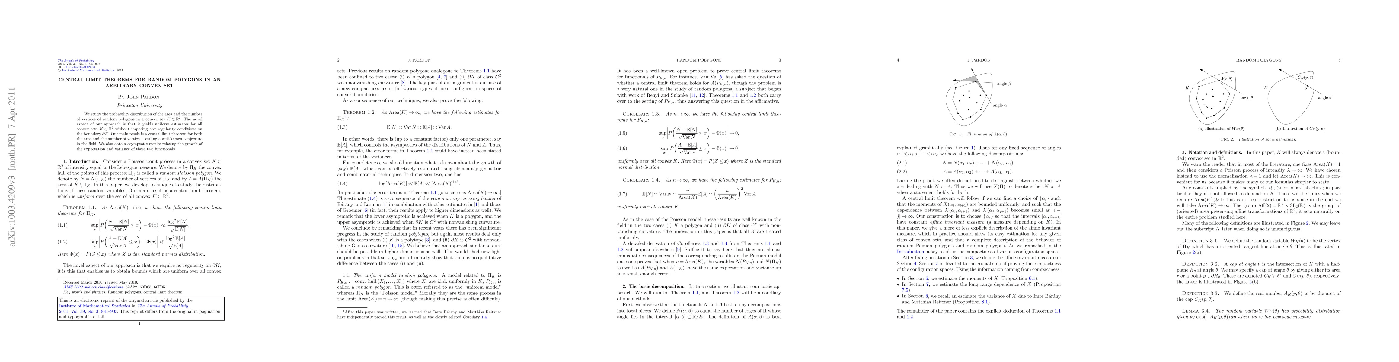 This paper establishes central limit theorems for random polygons within arbitrary convex sets in $\mathbb{R}^2$, providing uniform estimates without boundary regularity conditions. The study confirms a conjecture regarding the distribution of area and vertex count, along with asymptotic results on their growth expectations and variances.