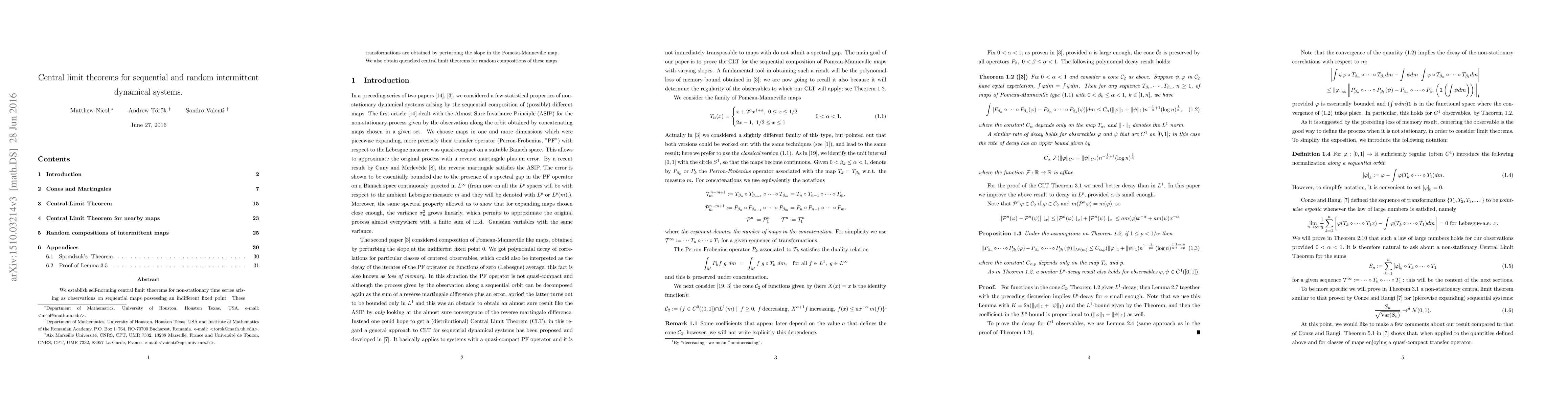Summary: This paper establishes self-norming central limit theorems for non-stationary time series from sequential maps with indifferent fixed points, derived from perturbed Pomeau-Manneville maps, and extends these results to quenched central limit theorems for random compositions of such maps.