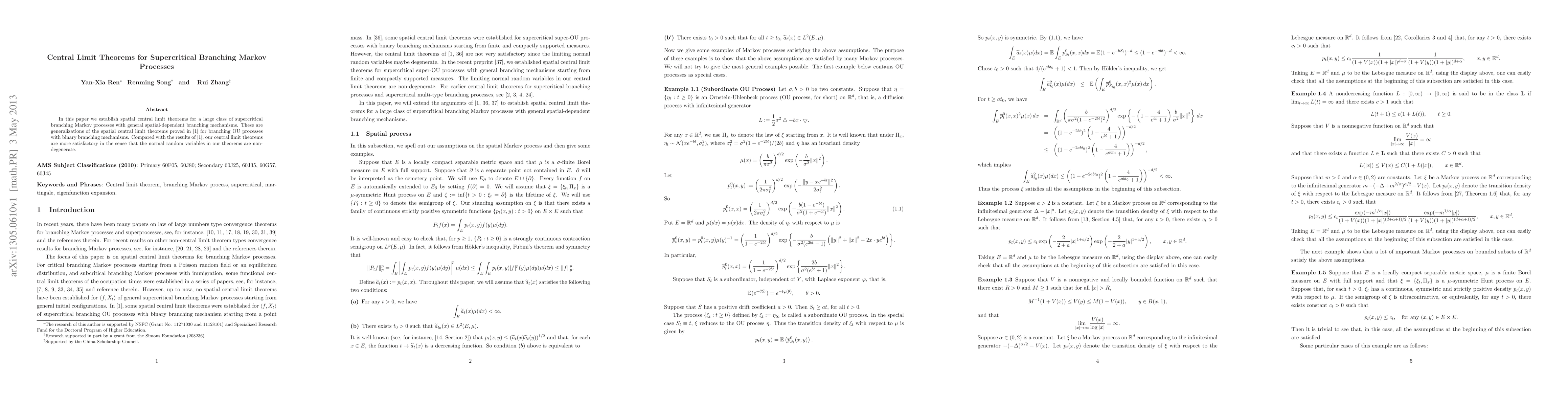 This paper establishes spatial central limit theorems for supercritical branching Markov processes with general spatial-dependent branching mechanisms, extending previous results to non-binary mechanisms. Unlike prior work, the normal random variables in these theorems are non-degenerate.