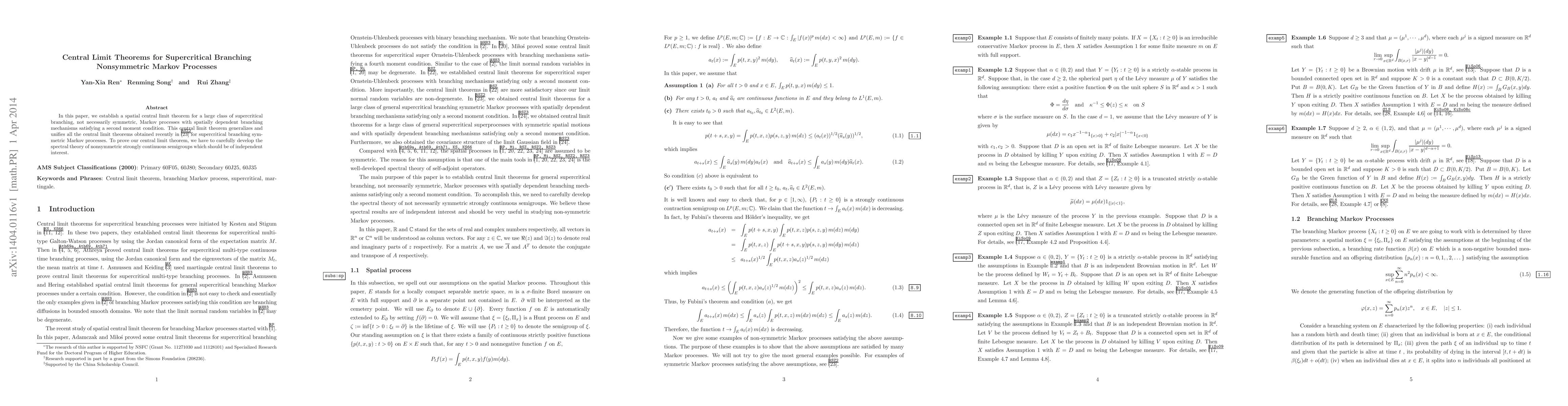 This paper establishes a spatial central limit theorem for supercritical branching Markov processes with nonsymmetric, spatially dependent branching mechanisms. It generalizes previous results for symmetric processes and develops new spectral theory for nonsymmetric semigroups.