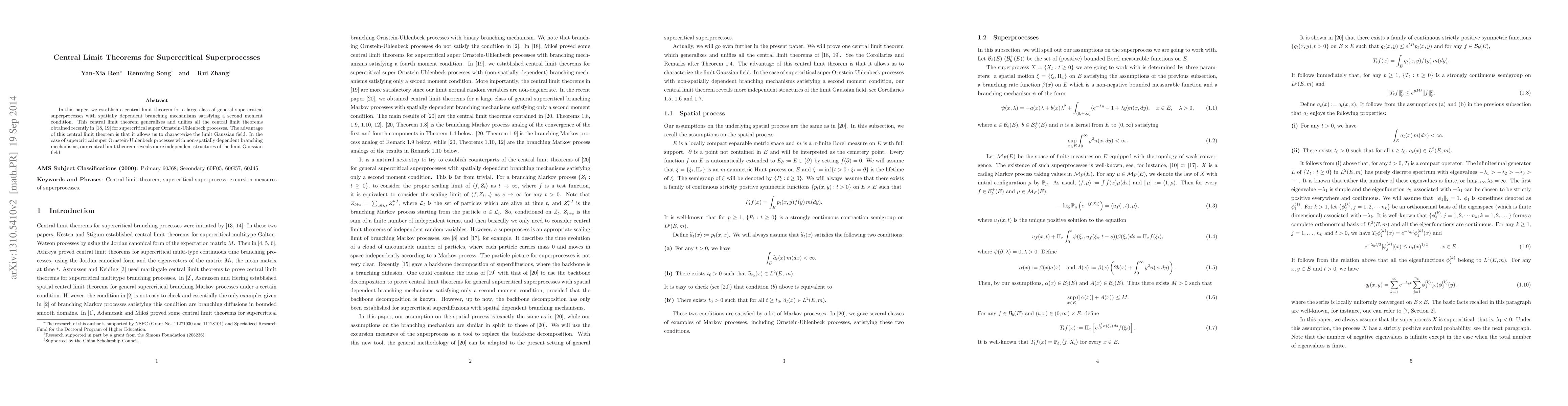 In this paper, we establish a central limit theorem for a large class of general supercritical superprocesses with spatially dependent branching mechanisms satisfying a second moment condition. This central limit theorem generalizes and unifies all the central limit theorems obtained recently in Mi{\l}o\'{s} (2012, arXiv:1203:6661) and Ren, Song and Zhang (2013, to appear in Acta Appl. Math., DOI 10.1007/s10440-013-9837-0) for supercritical super Ornstein-Uhlenbeck processes. The advantage of this central limit theorem is that it allows us to characterize the limit Gaussian field. In the case of supercritical super Ornstein-Uhlenbeck processes with non-spatially dependent branching mechanisms, our central limit theorem reveals more independent structures of the limit Gaussian field.