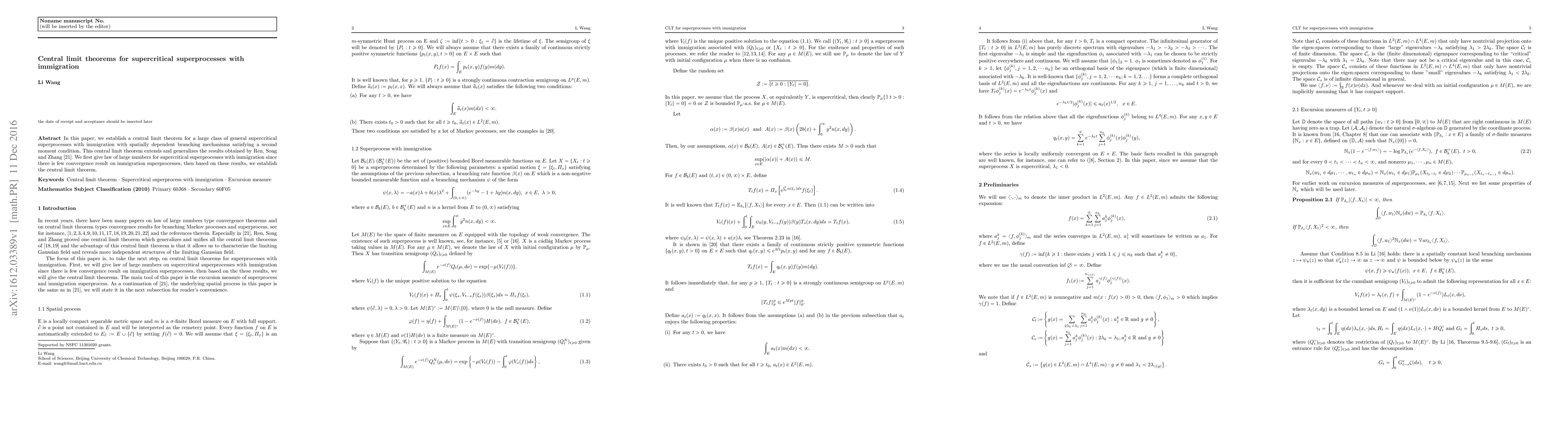 This paper establishes a central limit theorem for supercritical superprocesses with immigration featuring spatially dependent branching mechanisms. It extends previous results by providing a law of large numbers for these processes, which is foundational for the subsequent central limit theorem.