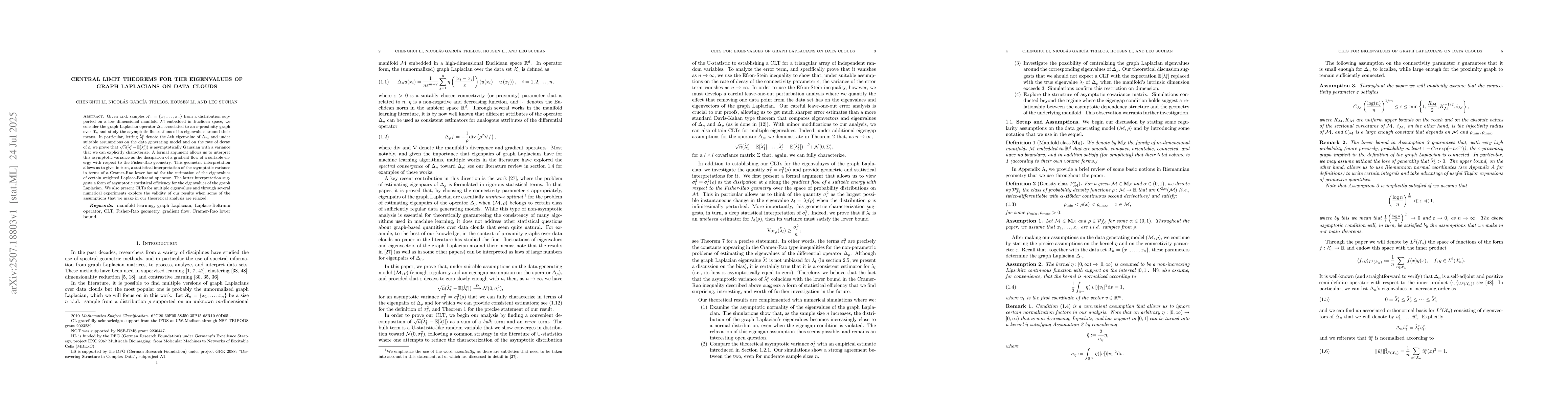 Given i.i.d.\ samples $X_n =\{ x_1, \dots, x_n \}$ from a distribution supported on a low dimensional manifold ${M}$ embedded in Eucliden space, we consider the graph Laplacian operator $\Delta_n$ associated to an $\varepsilon$-proximity graph over $X_n$ and study the asymptotic fluctuations of its eigenvalues around their means. In particular, letting $\hat{\lambda}_l^\varepsilon$ denote the $l$-th eigenvalue of $\Delta_n$, and under suitable assumptions on the data generating model and on the rate of decay of $\varepsilon$, we prove that $\sqrt{n } (\hat{\lambda}_{l}^\varepsilon - \mathbb{E}[\hat{\lambda}_{l}^\varepsilon] )$ is asymptotically Gaussian with a variance that we can explicitly characterize. A formal argument allows us to interpret this asymptotic variance as the dissipation of a gradient flow of a suitable energy with respect to the Fisher-Rao geometry. This geometric interpretation allows us to give, in turn, a statistical interpretation of the asymptotic variance in terms of a Cramer-Rao lower bound for the estimation of the eigenvalues of certain weighted Laplace-Beltrami operator. The latter interpretation suggests a form of asymptotic statistical efficiency for the eigenvalues of the graph Laplacian. We also present CLTs for multiple eigenvalues and through several numerical experiments explore the validity of our results when some of the assumptions that we make in our theoretical analysis are relaxed.