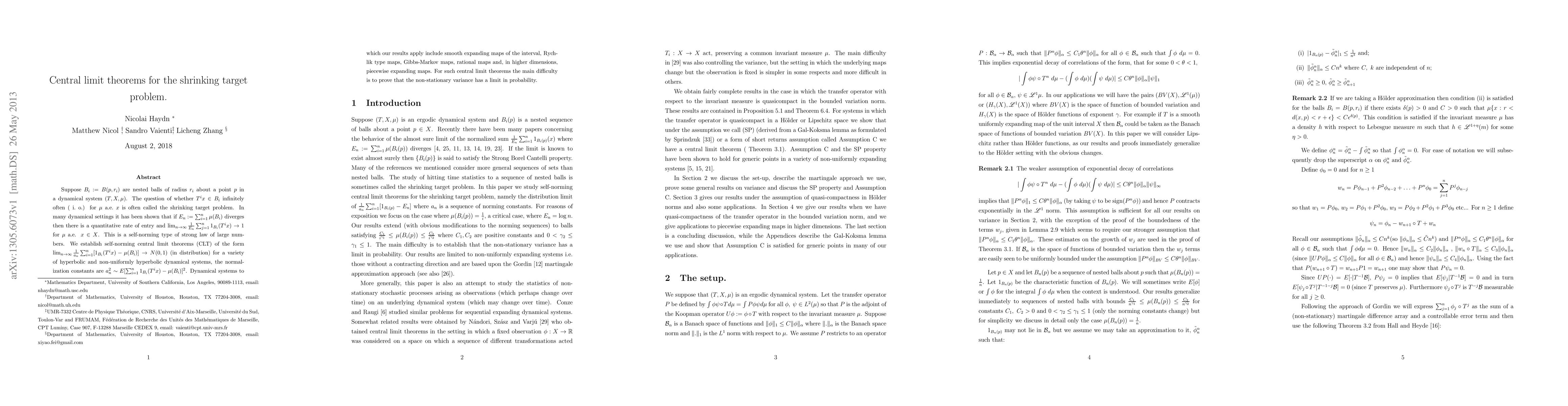 This paper establishes self-norming central limit theorems for the shrinking target problem in various dynamical systems, showing that the normalized sum of indicator functions of nested balls converges to a standard normal distribution. The main challenge addressed is proving the convergence of the non-stationary variance.