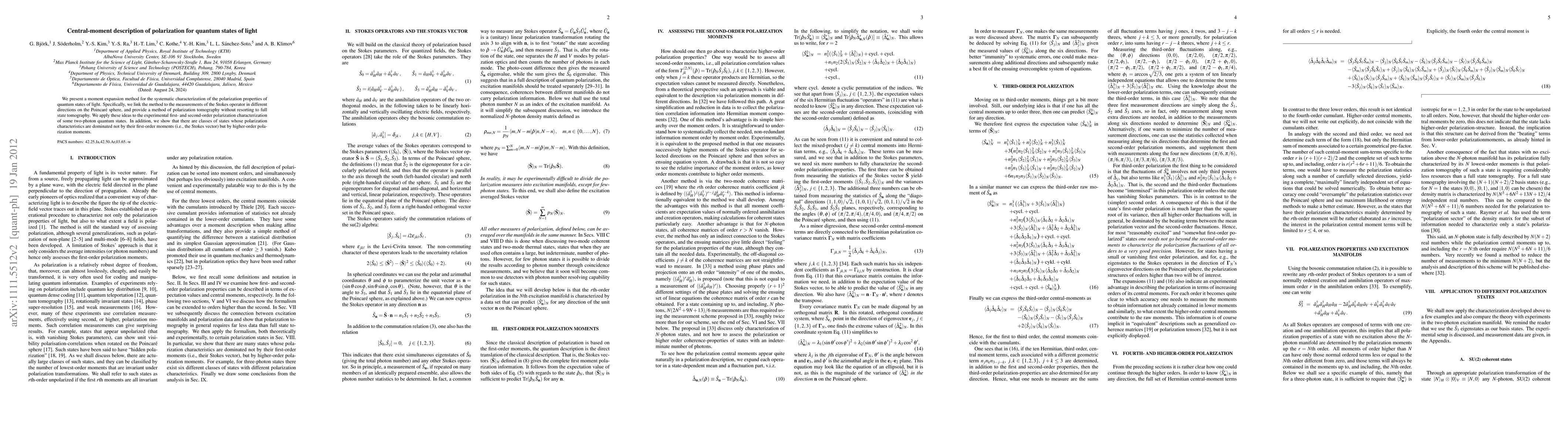 We present a moment expansion method for the systematic characterization of the polarization properties of quantum states of light. Specifically, we link the method to the measurements of the Stokes operator in different directions on the Poincar\'{e} sphere, and provide a method of polarization tomography without resorting to full state tomography. We apply these ideas to the experimental first- and second-order polarization characterization of some two-photon quantum states. In addition, we show that there are classes of states whose polarization characteristics are dominated not by their first-order moments (i.e., the Stokes vector) but by higher-order polarization moments.