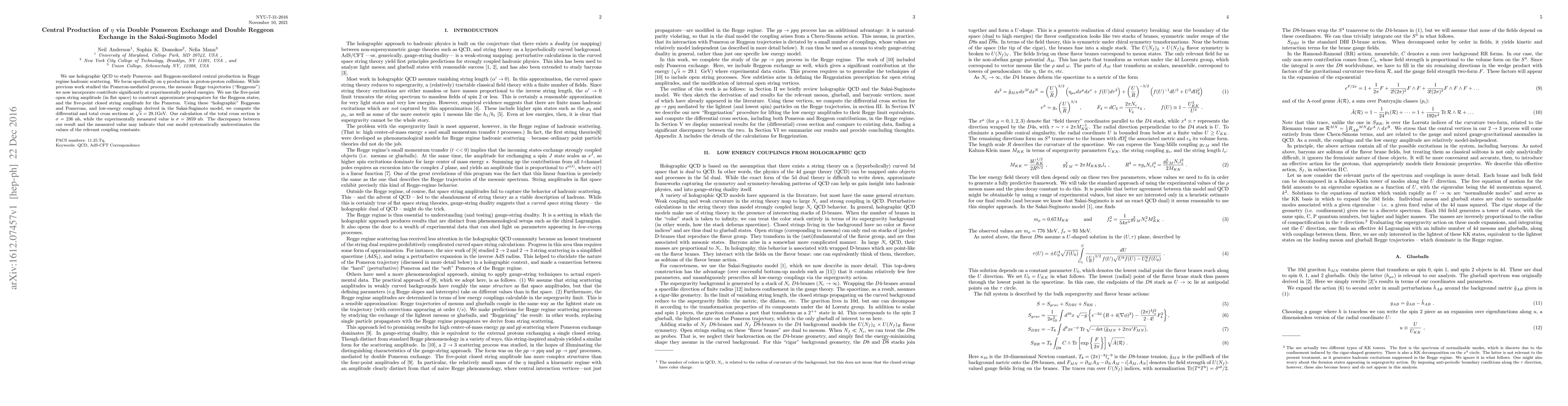 We use holographic QCD to study Pomeron- and Reggeon-mediated central production in Regge regime hadronic scattering. We focus specifically on $\eta$ production in proton-proton collisions. While previous work studied the Pomeron-mediated process, the mesonic Regge trajectories ("Reggeons") we now incorporate contribute significantly at experimentally probed energies. We use the five-point open string amplitude (in flat space) to construct approximate propagators for the Reggeon states, and the five-point closed string amplitude for the Pomeron. Using these "holographic" Reggeons and Pomerons, and low-energy couplings derived in the Sakai-Sugimoto model, we compute the differential and total cross sections at $\sqrt{s}$ =29.1 GeV. Our calculation of the total cross section is $\sigma =236 \ \mathrm{nb}$, while the experimentally measured value is $\sigma = 3859 \ \mathrm{nb}$. The discrepancy between our result and the measured value may indicate that our model systematically underestimates the values of the relevant coupling constants.