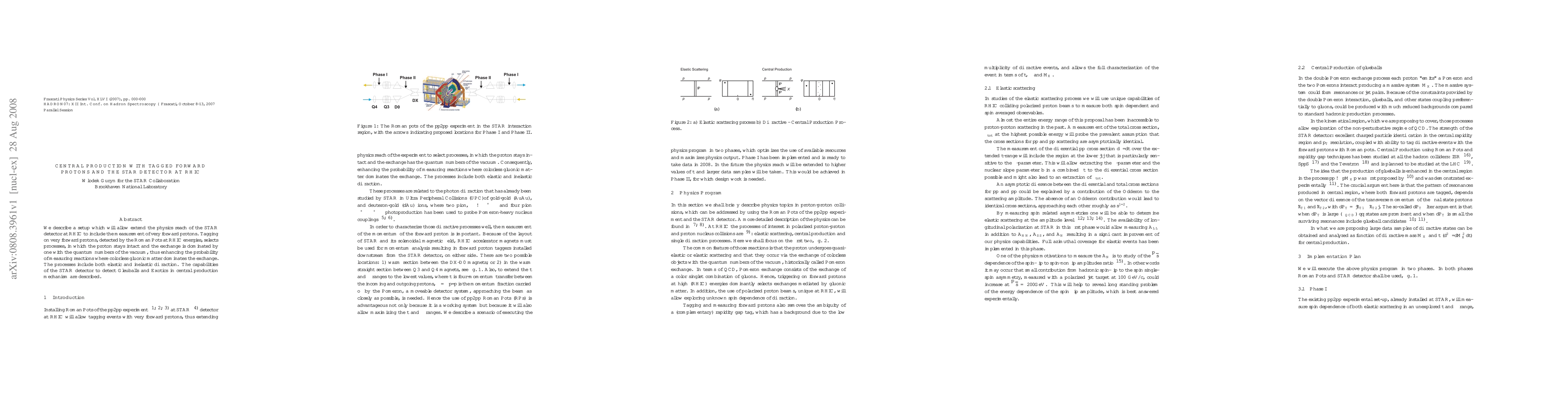 We describe a setup which will allow extend the physics reach of the STAR detector at RHIC to include the measurement of very forward protons. Tagging on very forward protons, detected by the Roman Pots at RHIC energies, selects processes, in which the proton stays intact and the exchange is dominated by one with the quantum numbers of the vacuum, thus enhancing the probability of measuring reactions where colorless gluonic matter dominates the exchange. The processes include both elastic and inelastic diffraction. The capabilities of the STAR detector to detect Gleuballs and Exotics in central production mechanism are described.