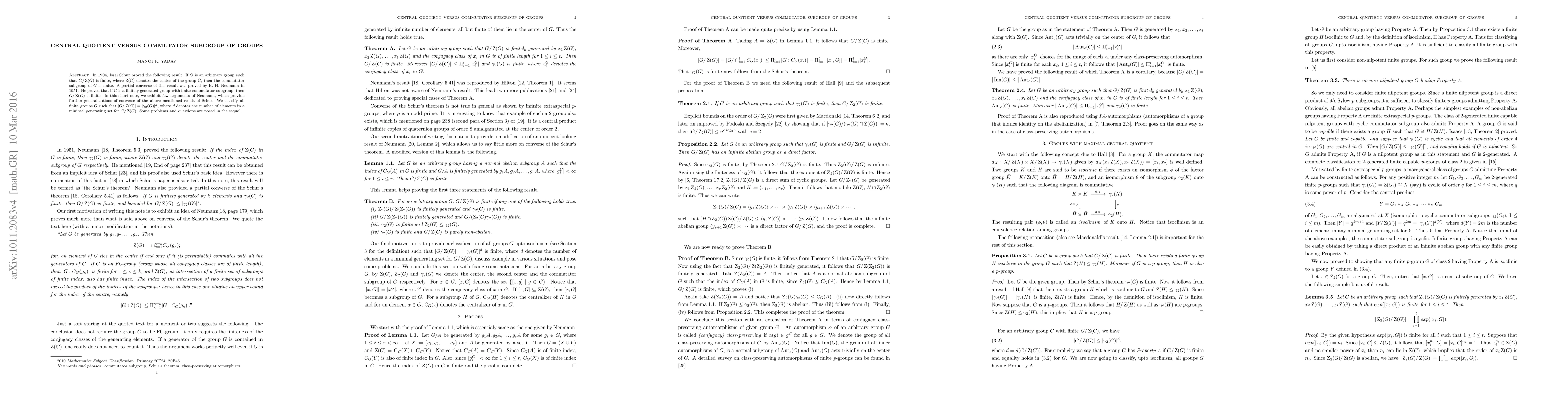 In 1904, Issai Schur proved the following result. If $G$ is an arbitrary group such that $G/\Z(G)$ is finite, where $\Z(G)$ denotes the center of the group $G$, then the commutator subgroup of $G$ is finite. A partial converse of this result was proved by B. H. Neumann in 1951. He proved that if $G$ is a finitely generated group with finite commutator subgroup, then $G/\Z(G)$ is finite. In this short note, we exhibit few arguments of Neumann, which provide further generalizations of converse of the above mentioned result of Schur. We classify all finite groups $G$ such that $|G/\Z(G)| = |\gamma_2(G)|^d$, where $d$ denotes the number of elements in a minimal generating set for $G/\Z(G)$. Some problems and questions are posed in the sequel.