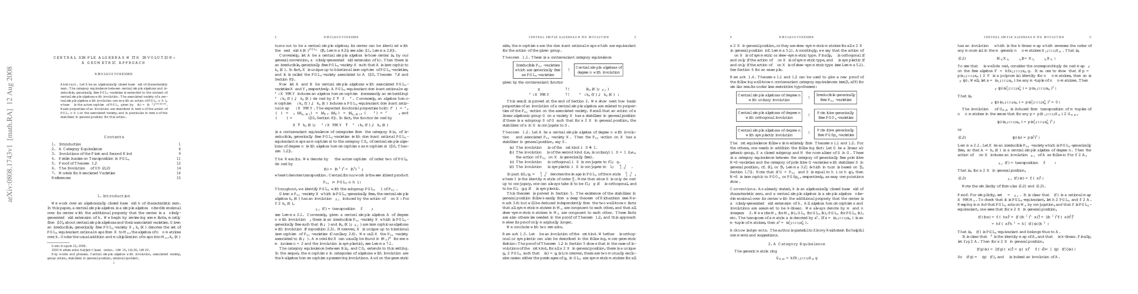 Let $k$ be an algebraically closed base field of characteristic zero. The category equivalence between central simple algebras and irreducible, generically free $PGL_n$-varieties is extended to the context of central simple algebras with involution. The associated variety of a central simple algebra with involution comes with an action of the semidirect product $P_{n,\tau}:=PGL_n\rtimes<\tau>$, where $\tau$ is the automorphism of $\PGLn$ given by $\tau(h)=(h^{-1})^transpose$. Basic properties of an involution are described in terms of the action of $P_{n,\tau}$ on the associated variety, and in particular in terms of the stabilizer in general position for this action.
