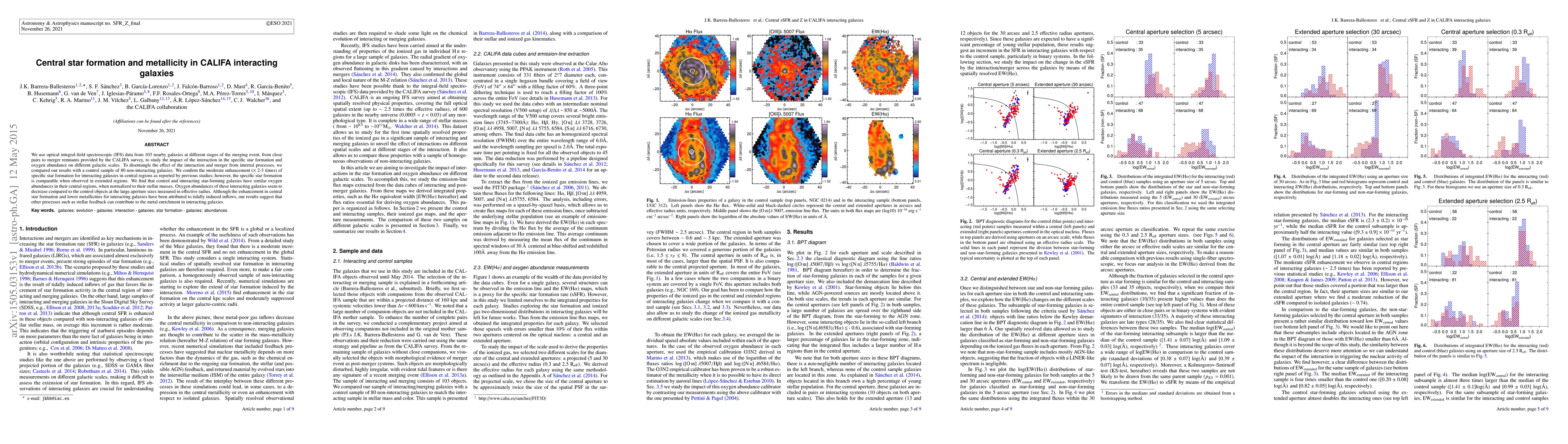 This study investigates the impact of galaxy interactions on star formation rates and metallicity using CALIFA survey data, finding a moderate enhancement in central star formation in interacting galaxies but comparable rates in extended regions. It also reveals similar central oxygen abundances between interacting and non-interacting galaxies, suggesting stellar feedback may play a role in metal enrichment.