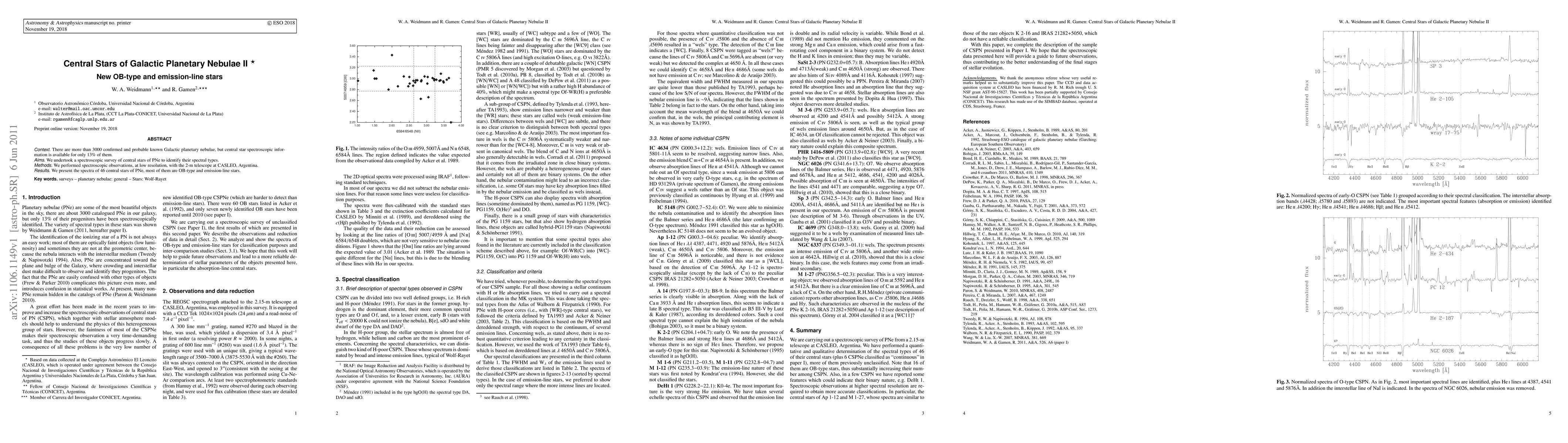 Context. There are more than 3000 confirmed and probable known Galactic planetary nebulae, but central star spectroscopic information is available for only 13% of them. Aims. We undertook a spectroscopic survey of central stars of PNe to identify their spectral types. Methods. We performed spectroscopic observations, at low resolution, with the 2-m telescope at CASLEO, Argentina. Results. We present the spectra of 46 central stars of PNe, most of them are OB-type and emission-line stars.