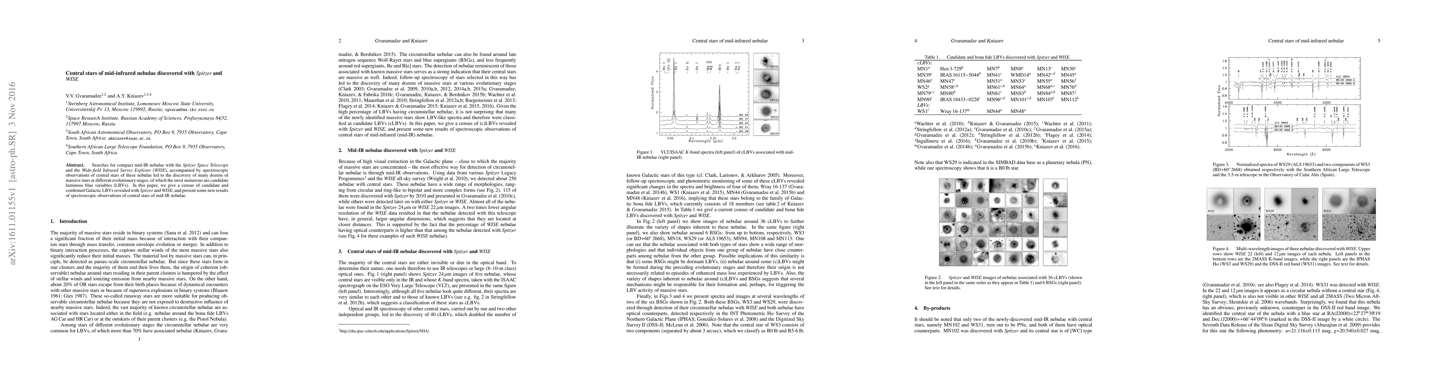 Searches for compact mid-IR nebulae with the Spitzer Space Telescope and the Wide-field Infrared Survey Explorer (WISE), accompanied by spectroscopic observations of central stars of these nebulae led to the discovery of many dozens of massive stars at different evolutionary stages, of which the most numerous are candidate luminous blue variables (LBVs). In this paper, we give a census of candidate and confirmed Galactic LBVs revealed with Spitzer and WISE, and present some new results of spectroscopic observations of central stars of mid-IR nebulae.