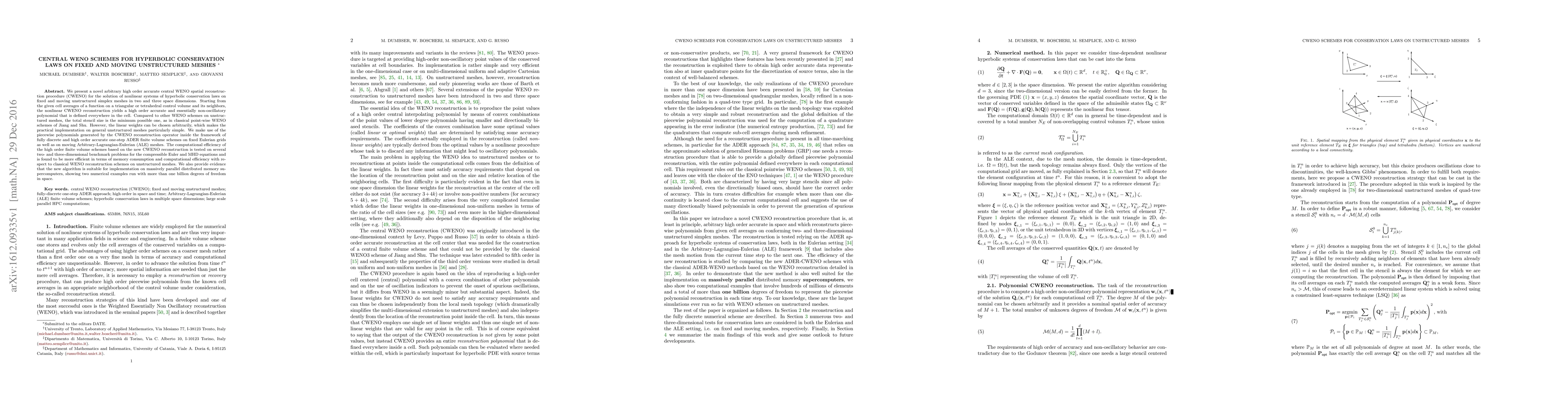 This paper introduces a high-order accurate central WENO (CWENO) reconstruction scheme for solving hyperbolic conservation laws on both fixed and moving unstructured meshes. It offers a minimal stencil size and flexible linear weights, leading to computational efficiency and suitability for large-scale parallel computing, as demonstrated by simulations with over a billion degrees of freedom.