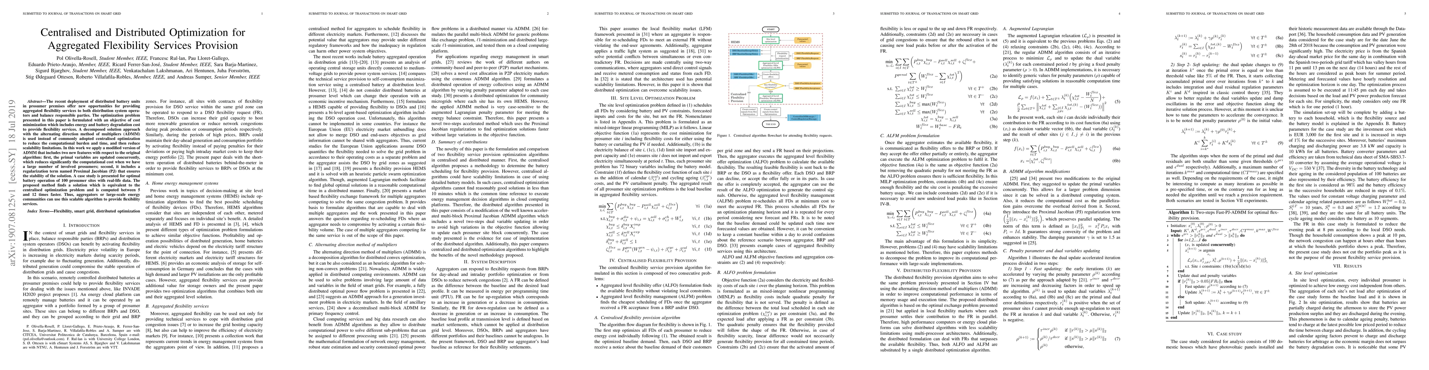 Researchers developed a scalable optimization algorithm to provide aggregated flexibility services through distributed battery units in prosumer premises, finding solutions up to 12 times faster than centralized methods with similar accuracy.