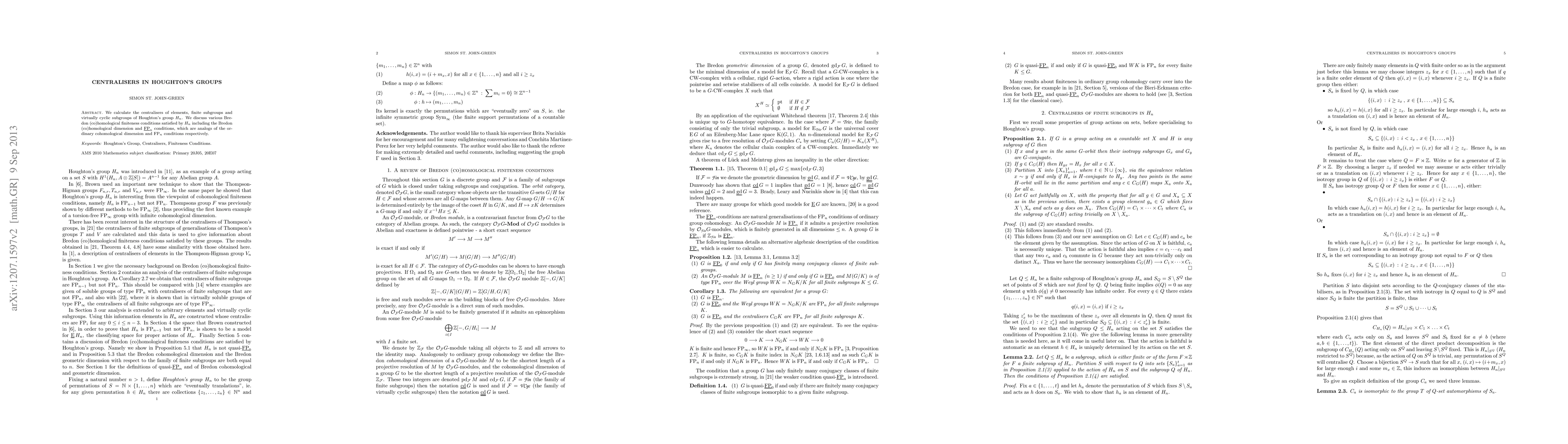 We study the centralisers of elements, finite subgroups and virtually cyclic subgroups of Houghton's group Hn. We discuss various Bredon (co-)homological finiteness conditions satisfied by Hn including the Bredon (co-)homological dimension and Bredon-FPn conditions, which are analogs of the ordinary co-homological dimension and FPn conditions respectively.