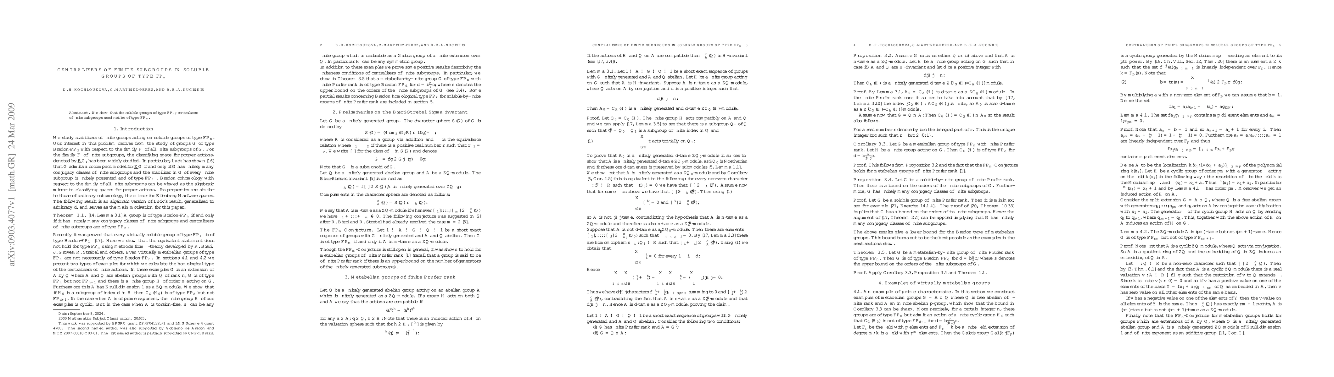 Summary: This paper demonstrates that in soluble groups of type FPn, the centralisers of finite subgroups do not necessarily retain the FPn property, challenging the assumption that subgroup centralisers maintain the same structural characteristics as the parent group.