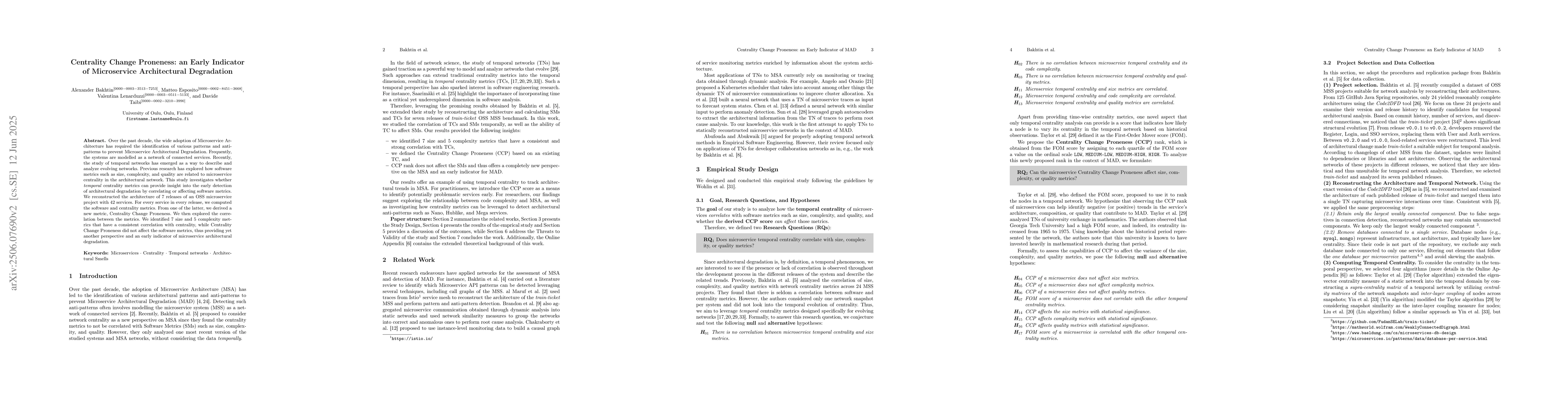 Researchers found that Centrality Change Proneness is a new metric that can predict microservice architectural degradation before it occurs, and it does not affect software metrics like size or complexity.