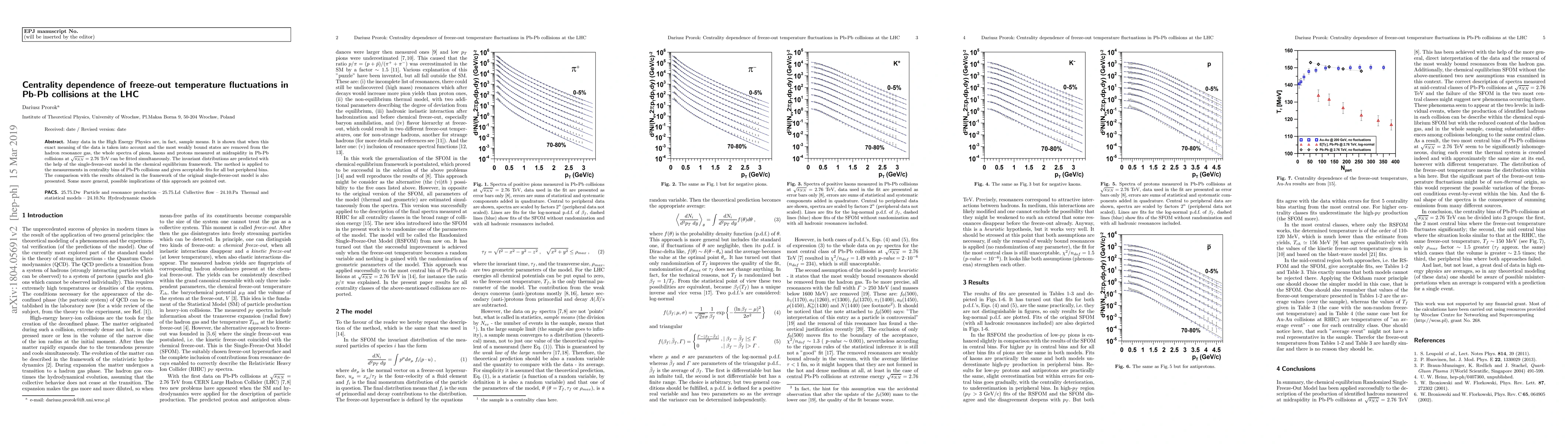 This paper investigates the centrality dependence of freeze-out temperature fluctuations in Pb-Pb collisions at the LHC, showing that accounting for sample means and removing weakly bound states allows simultaneous fitting of pion, kaon, and proton spectra. The single-freeze-out model in chemical equilibrium provides acceptable fits for central bins, with implications for broader High Energy Physics analyses.