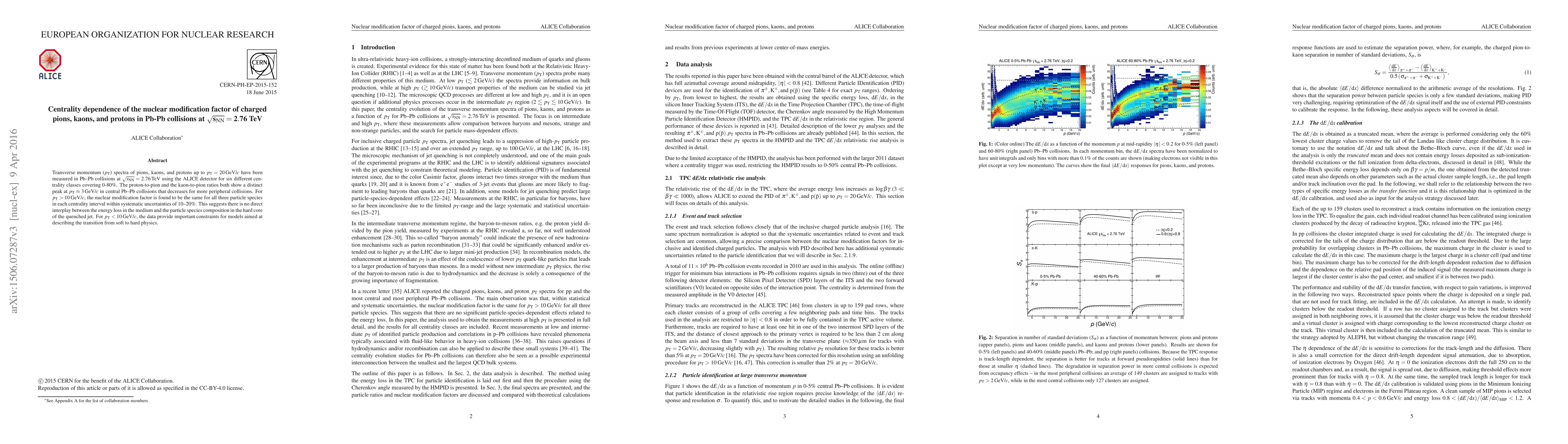 Researchers studied particle spectra in Pb-Pb collisions to understand how different particles interact with a heavy ion medium. They found that the nuclear modification factor, which measures energy loss, is similar across proton, pion, and kaon species at high transverse momentum.