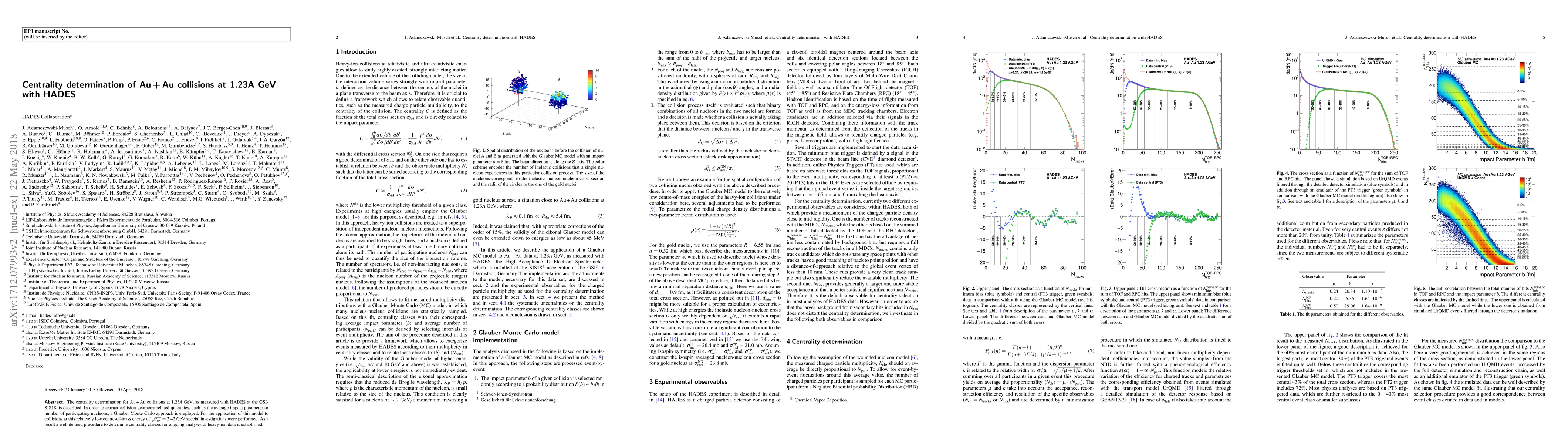 This paper describes the centrality determination for Au+Au collisions at 1.23A GeV using HADES at GSI-SIS18, employing a Glauber Monte Carlo approach to extract collision geometry quantities. Special investigations were conducted for this low energy, leading to a well-defined procedure for determining centrality classes for heavy-ion collision analyses.
