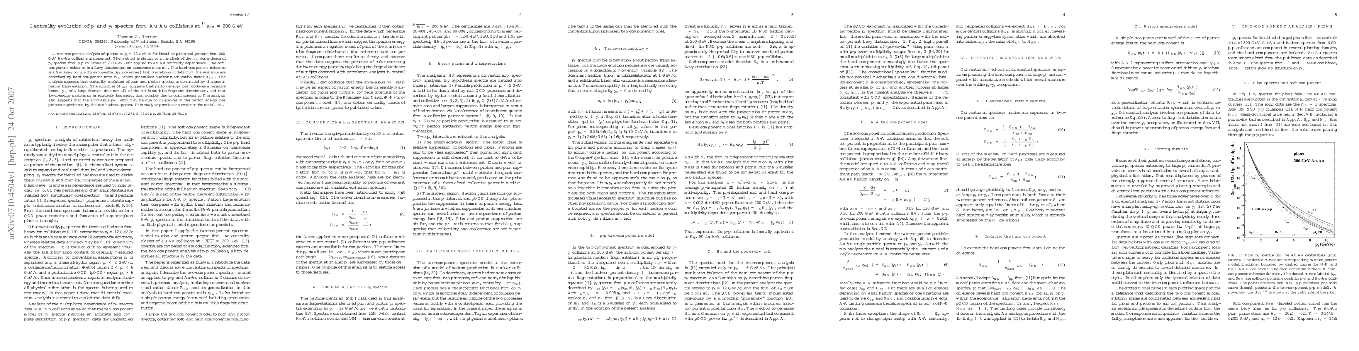 The study analyzes transverse momentum ($p_t$) and transverse rapidity ($y_t$) spectra of pions and protons from Au-Au collisions at 200 GeV, finding that centrality-dependent deviations suggest dominant changes in parton fragmentation. A two-component model, using a Lévy distribution for the soft component and a Gaussian with exponential tail for the hard component, reveals parton energy loss causing a negative boost ($Delta y_t$) in a significant portion of fragment distribution. The analysis hints at reduced energy loss for lower-energy partons and proposes differences in parton energy-loss processes explain the unusual $p/pi$ ratio, with no evidence for radial flow.