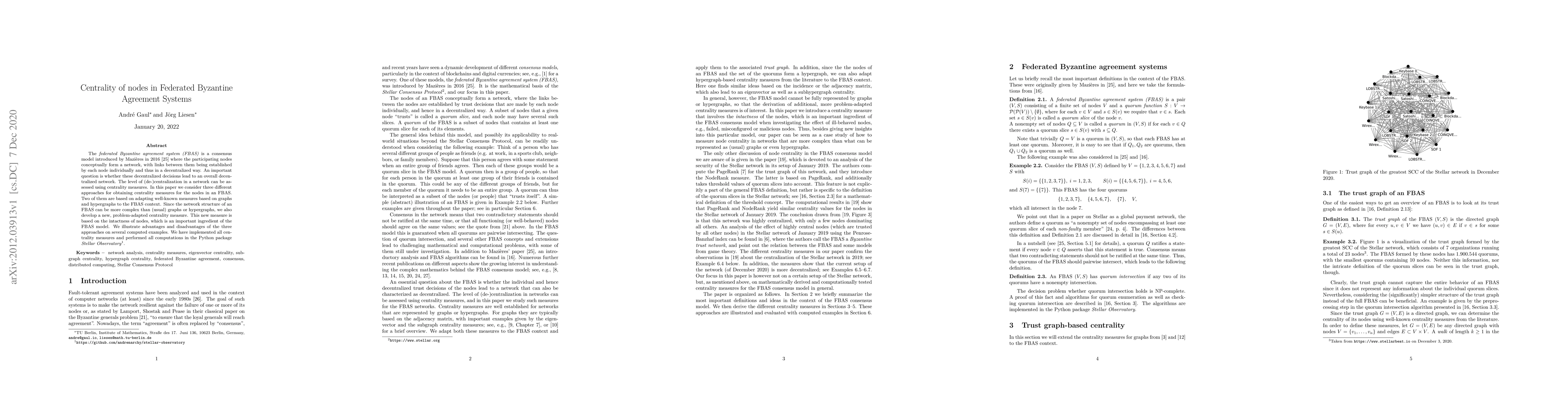 A research paper explores centrality measures for nodes in Federated Byzantine Agreement Systems (FBAS), developing a new measure based on intactness to assess decentralization levels.