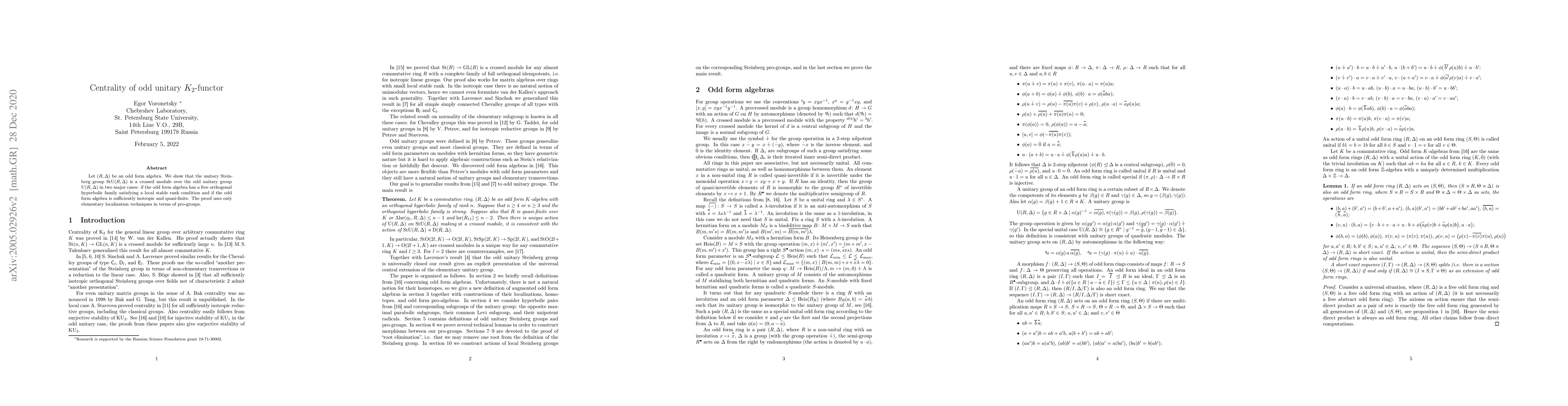 The research employs localization techniques in terms of pro-groups to demonstrate that the unitary Steinberg group StU(R, Δ) forms a crossed module over the odd unitary group U(R, Δ) under specific conditions related to the odd form algebra (R, Δ).