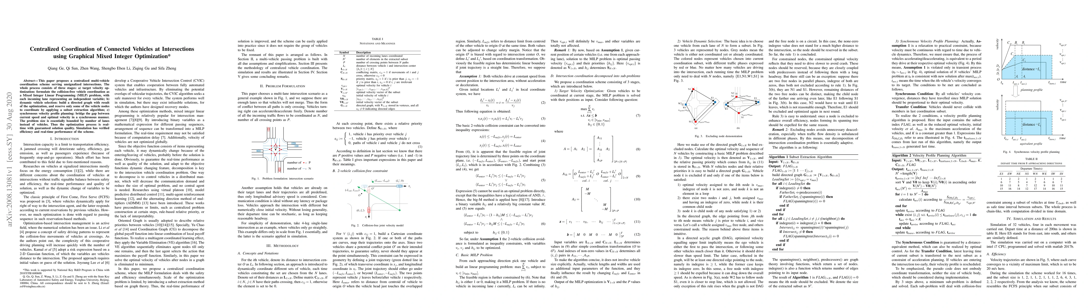 This paper proposes a centralized multi-vehicle coordination scheme serving unsignalized intersections. The whole process consists of three stages: a) target velocity optimization: formulate the collision-free vehicle coordination as a Mixed Integer Linear Programming (MILP) problem, with each incoming lane representing an independent variable; b) dynamic vehicle selection: build a directed graph with result of the optimization, and reserve only some of the vehicle nodes to coordinate by applying a subset extraction algorithm; c) synchronous velocity profile planning: bridge the gap between current speed and optimal velocity in a synchronous manner. The problem size is essentially bounded by number of lanes instead of vehicles. Thus the optimization process is realtime with guaranteed solution quality. Simulation has verified efficiency and real-time performance of the scheme.