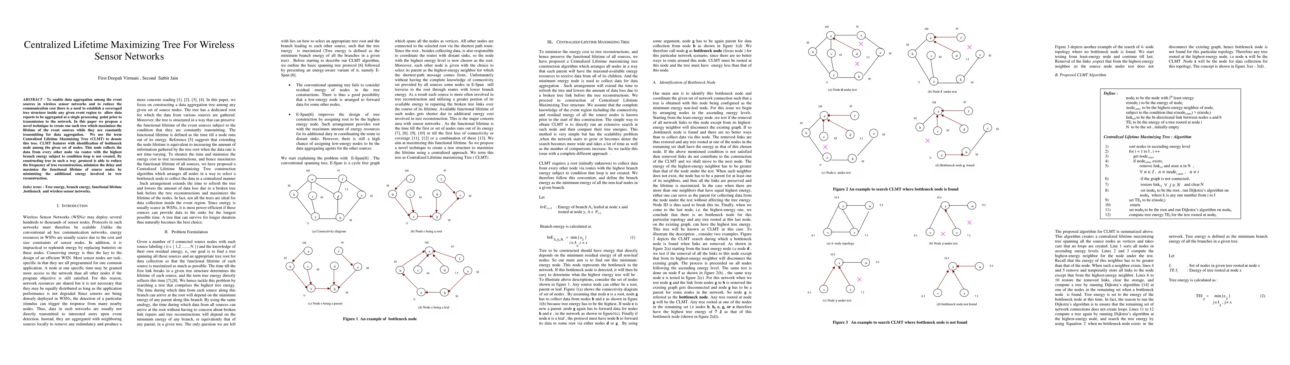 This paper proposes a Centralized Lifetime Maximizing Tree (CLMT) technique to optimize data aggregation in wireless sensor networks, aiming to extend the operational lifetime of nodes by minimizing energy consumption and reducing the need for frequent tree reconstruction. The CLMT identifies a bottleneck node to collect data, ensuring efficient energy use and minimizing delays.