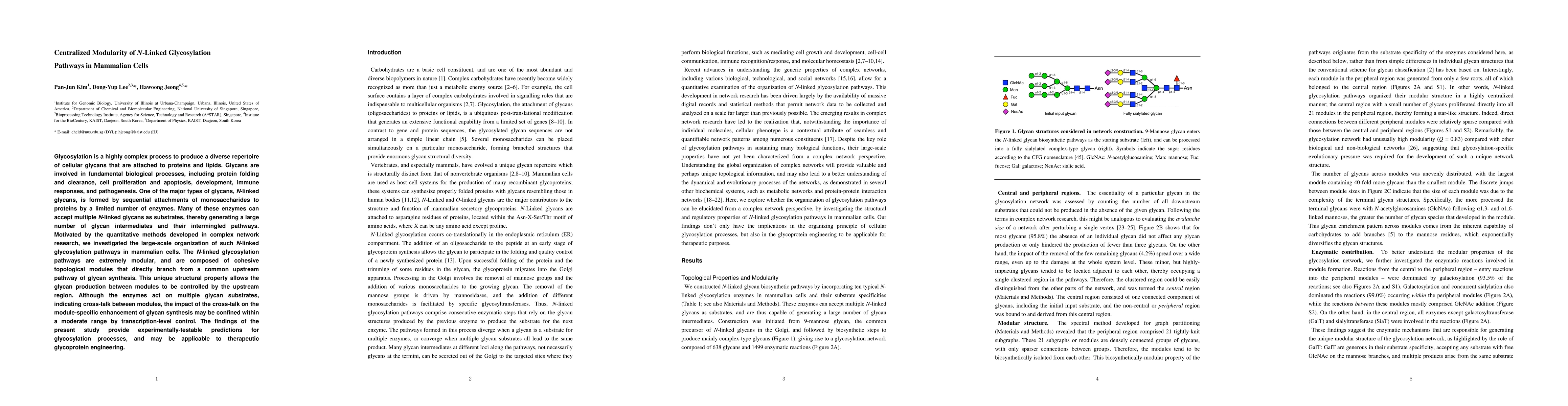 This study reveals that N-linked glycosylation pathways in mammalian cells are highly modular, branching cohesively from a central upstream pathway, allowing upstream control over module-specific glycan synthesis. Despite cross-talk among enzymes, transcription-level control moderates the impact, suggesting potential applications in therapeutic glycoprotein engineering.