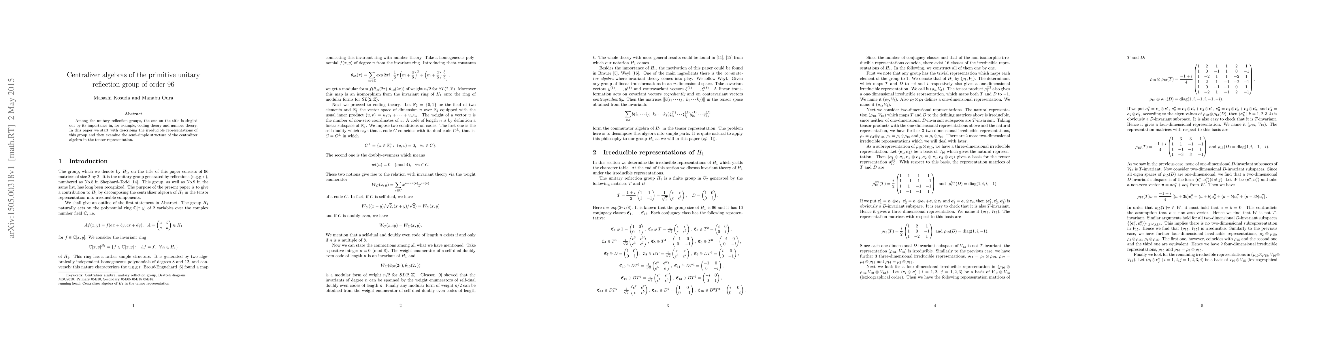 Among the unitary reflection groups, the one on the title is singled out by its importance in, for example, coding theory and number theory. In this paper we start with describing the irreducible representations of this group and then examine the semi-simple structure of the centralizer algebra in the tensor representation.
