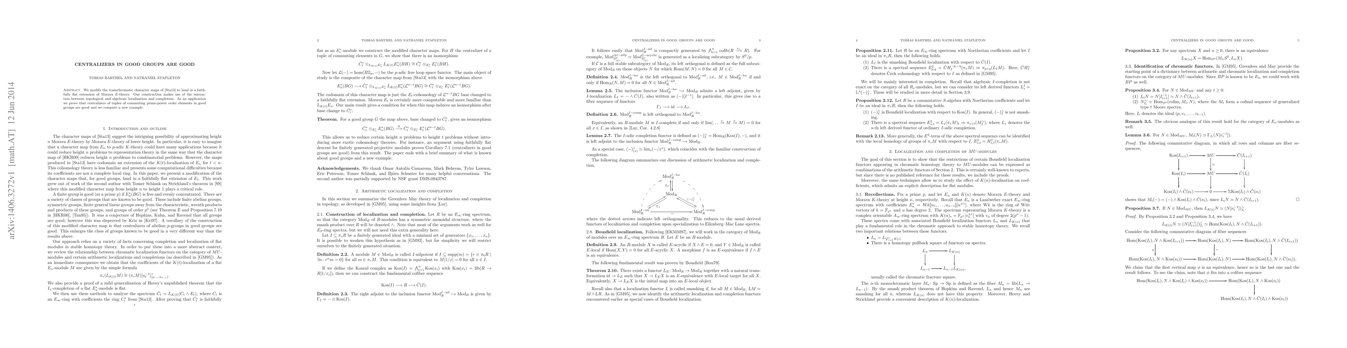 We modify the transchromatic character maps to land in a faithfully flat extension of Morava E-theory. Our construction makes use of the interaction between topological and algebraic localization and completion. As an application we prove that centralizers of tuples of commuting prime-power order elements in good groups are good and we compute a new example.