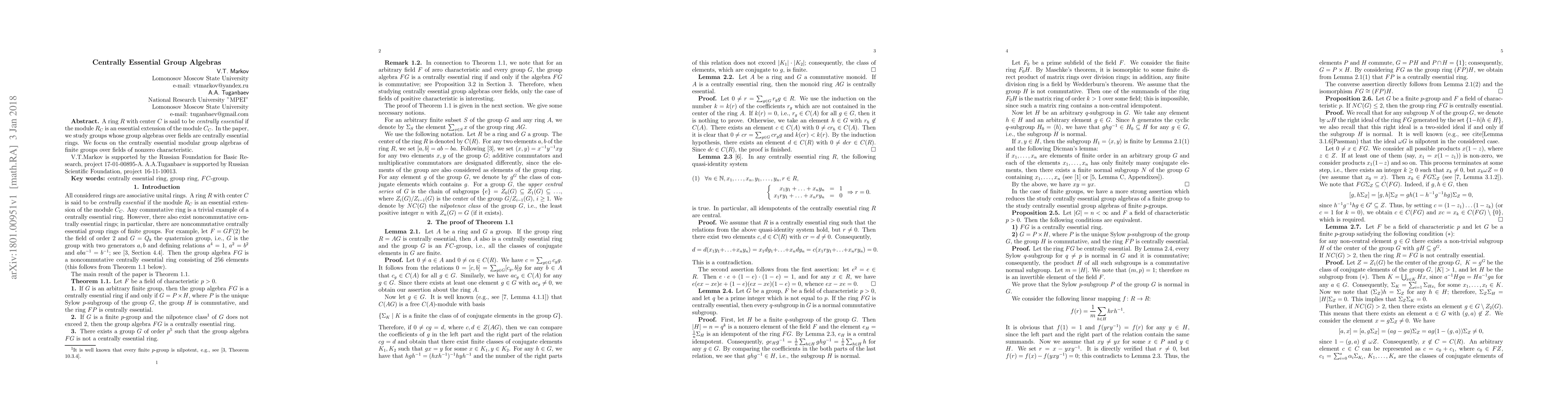 This paper investigates group algebras over fields of nonzero characteristic for finite groups that become centrally essential rings, where the module of the group algebra over the center of the ring is an essential extension of the center module. Funding for the study comes from the Russian Foundation for Basic Research and the Russian Scientific Foundation.