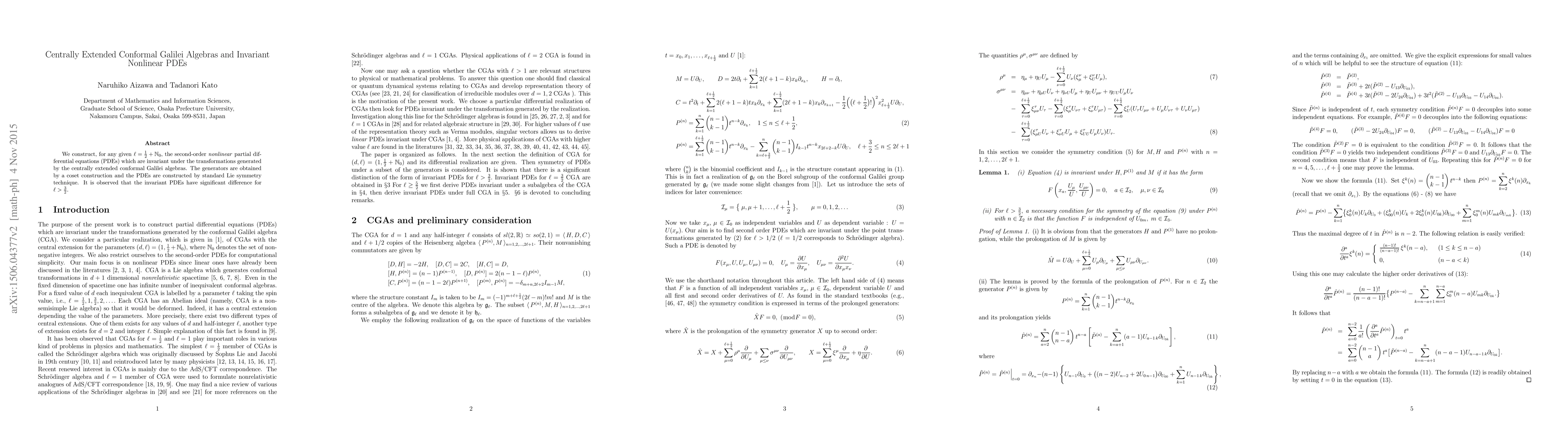 Summary: This paper constructs second-order nonlinear PDEs invariant under centrally extended conformal Galilei algebras, using coset constructions and Lie symmetry techniques. It notes distinct behaviors in invariant PDEs for $\ell > \frac{3}{2}$.