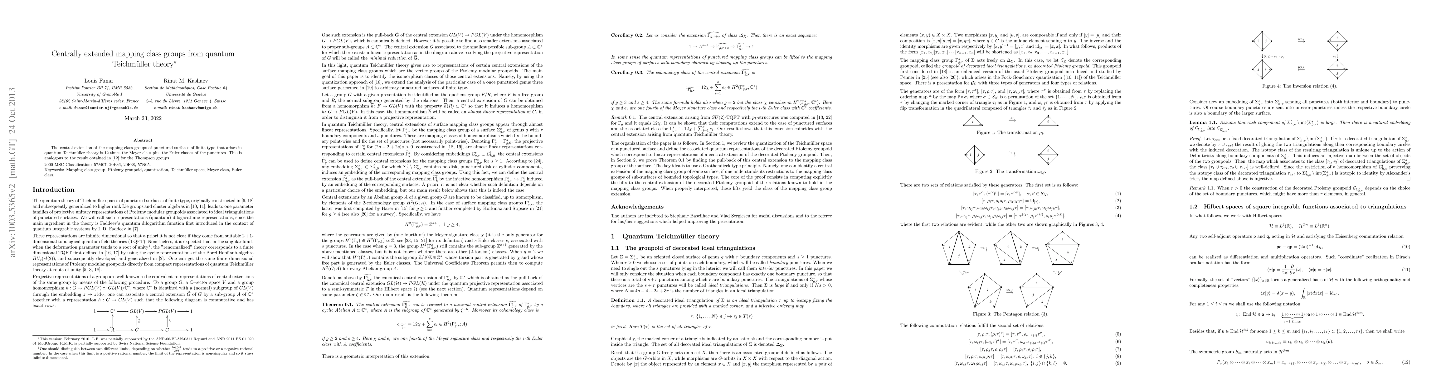 Summary: This paper explores the central extension of mapping class groups in quantum Teichmüller theory, revealing it to be 12 times the Meyer class plus Euler classes of punctures, mirroring results from Thompson groups.