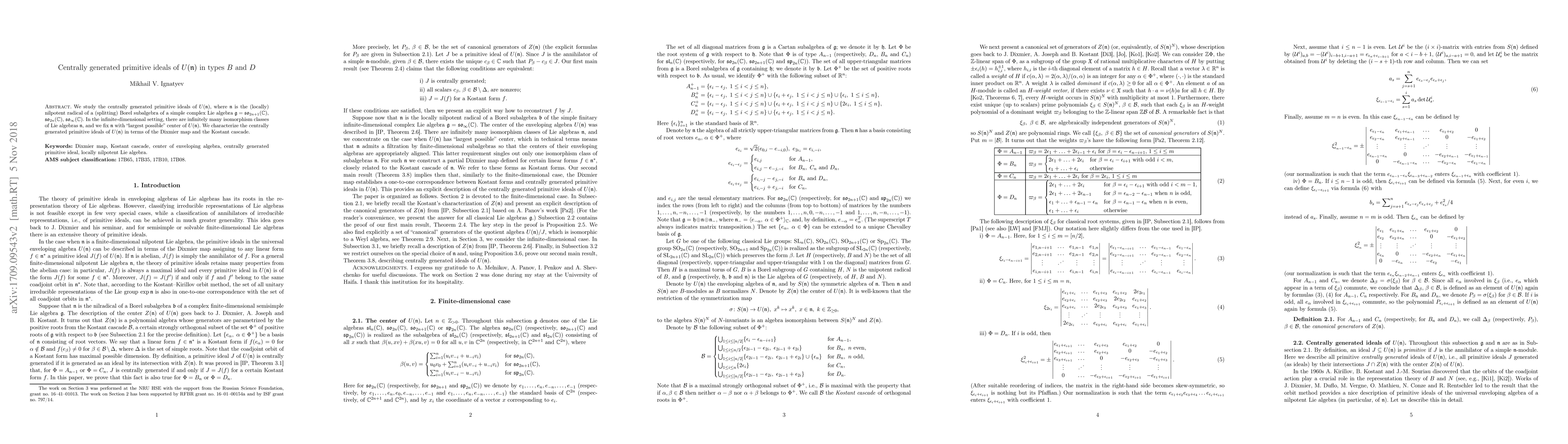 We study the centrally generated primitive ideals of $U(\mathfrak{n})$, where $\mathfrak{n}$ is the (locally) nilpotent radical of a (splitting) Borel subalgebra of a simple complex Lie algebra $\mathfrak{g}=\mathfrak{o}_{2n+1}(\mathbb{C})$, $\mathfrak{o}_{2n}(\mathbb{C})$, $\mathfrak{o}_{\infty}(\mathbb{C})$. In the infinite-dimensional setting, there are infinitely many isomorphism classes of Lie algebras $\mathfrak{n}$, and we fix $\mathfrak{n}$ with "largest possible" center of $U(\mathfrak{n})$. We characterize the centrally generated primitive ideals of $U(\mathfrak{n})$ in terms of the Dixmier map and the Kostant cascade.