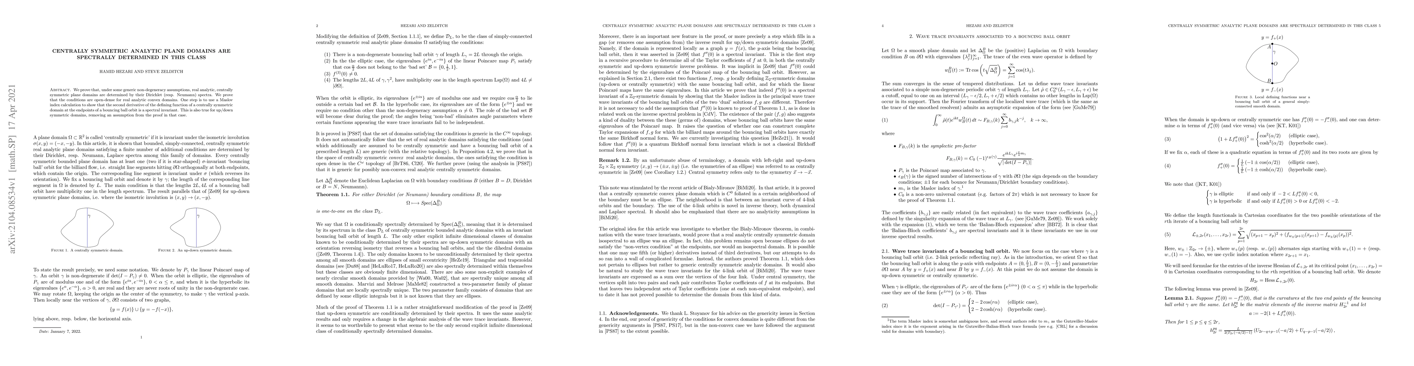 A new study proves that real analytic centrally symmetric plane domains can be determined by their Dirichlet or Neumann spectra under certain assumptions, with implications for understanding the geometry of these domains.