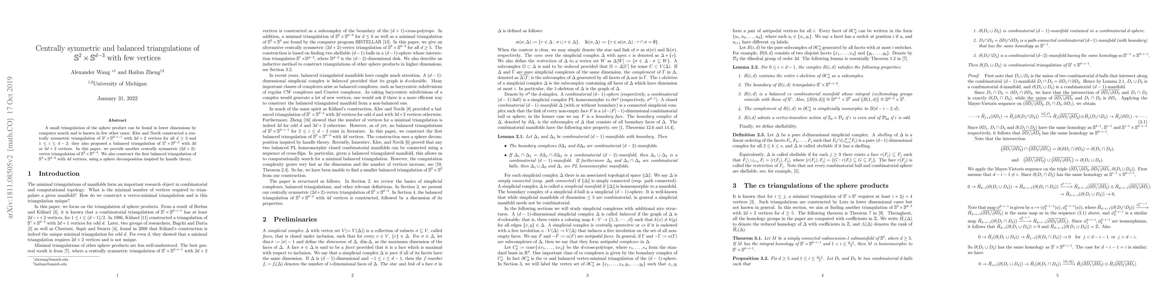This paper presents a new centrally symmetric triangulation of $\mathbb{S}^2\times \mathbb{S}^{d-3}$ with $2d+2$ vertices, alongside the first balanced triangulation of the same product with $4d$ vertices, utilizing a sphere decomposition method inspired by handle theory.