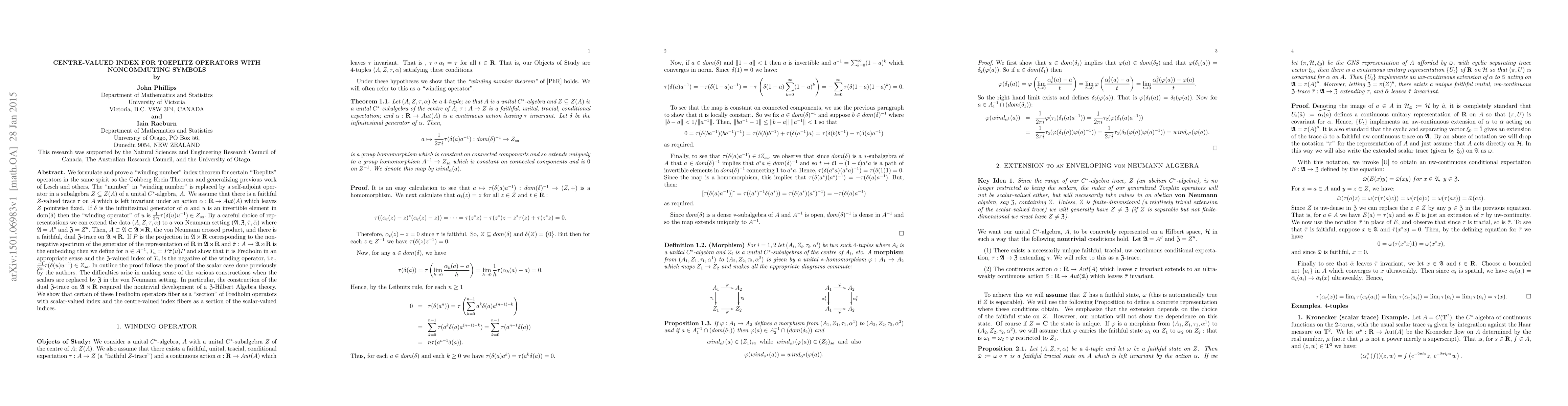 This paper introduces a centre-valued index for Toeplitz operators with invertible noncommuting symbols, defined using a centre-valued invariant trace and a novel centre-valued winding number, generalising previous results with scalar-valued traces.