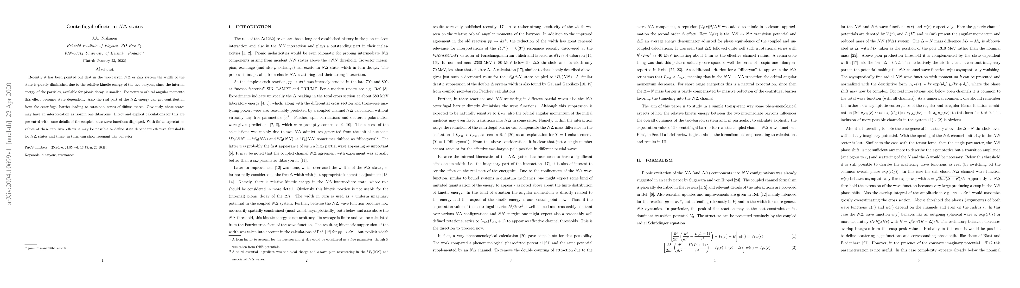 Research finds that centrifugal effects significantly narrow the width of N-Delta states due to relative kinetic energy, leading to potentially state-dependent effective thresholds. This could reveal resonant-like behavior in these states.