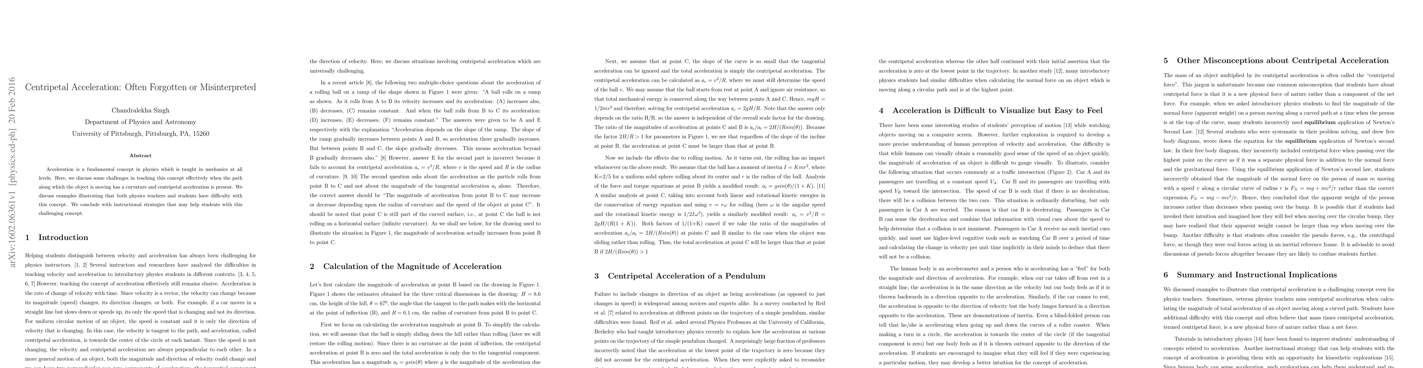 Research highlights challenges in teaching centripetal acceleration, a fundamental physics concept, due to difficulties in understanding curved paths, and proposes instructional strategies to improve student understanding.