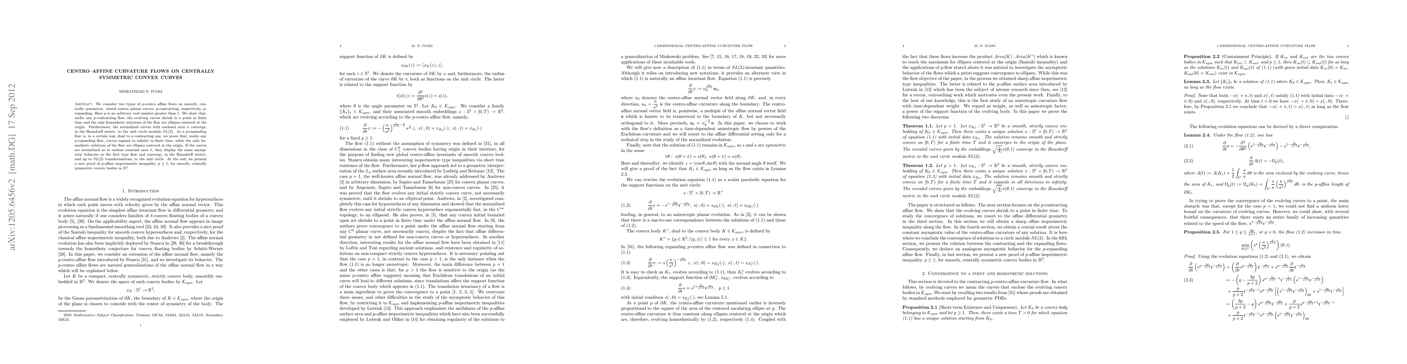 This paper studies $p$-centro affine flows on centrally symmetric convex curves, showing that $p$-contracting flows shrink curves to a point and converge to the unit circle, while $p$-expanding flows cause curves to expand to infinity, both converging to the unit circle under area normalization. A new proof of the $p$-affine isoperimetric inequality is also provided.