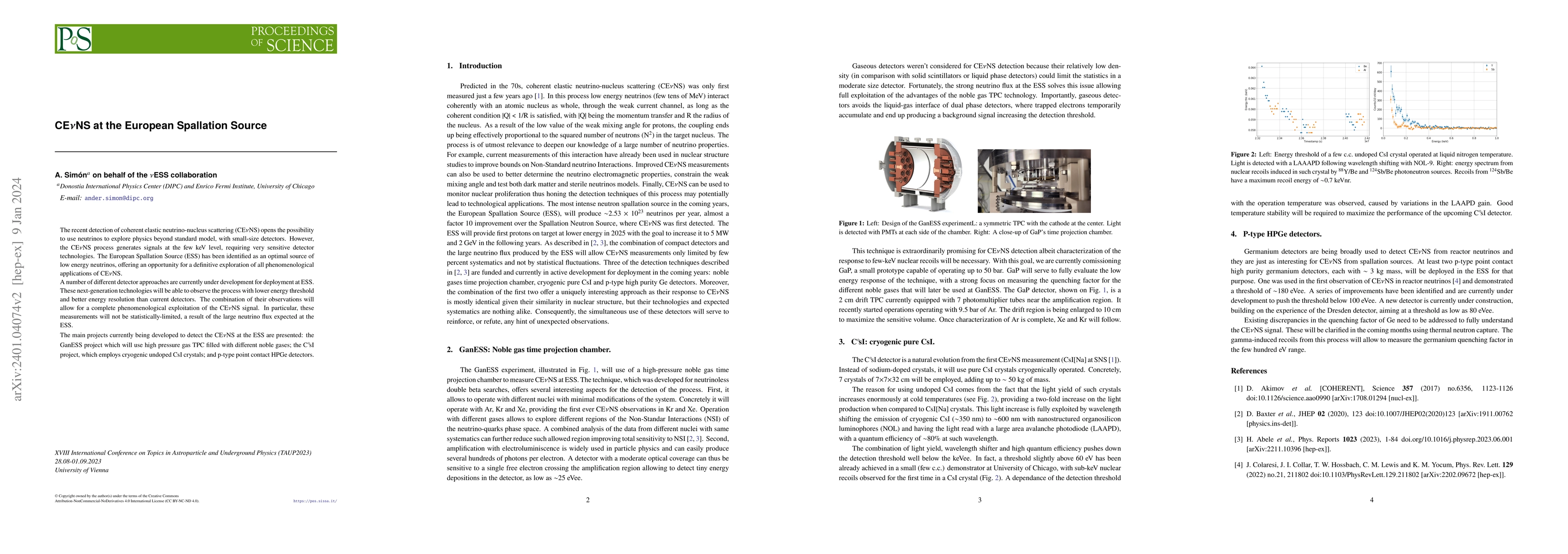 The paper discusses the potential of the European Spallation Source (ESS) as a neutrino source for detecting coherent elastic neutrino-nucleus scattering (CEνNS), emphasizing the development of advanced detector technologies to observe this low-energy process. Various projects, including GanESS, C$^{\circ}\!$sI, and HPGe detectors, aim to exploit the large neutrino flux at ESS for comprehensive phenomenological studies of CEνNS.