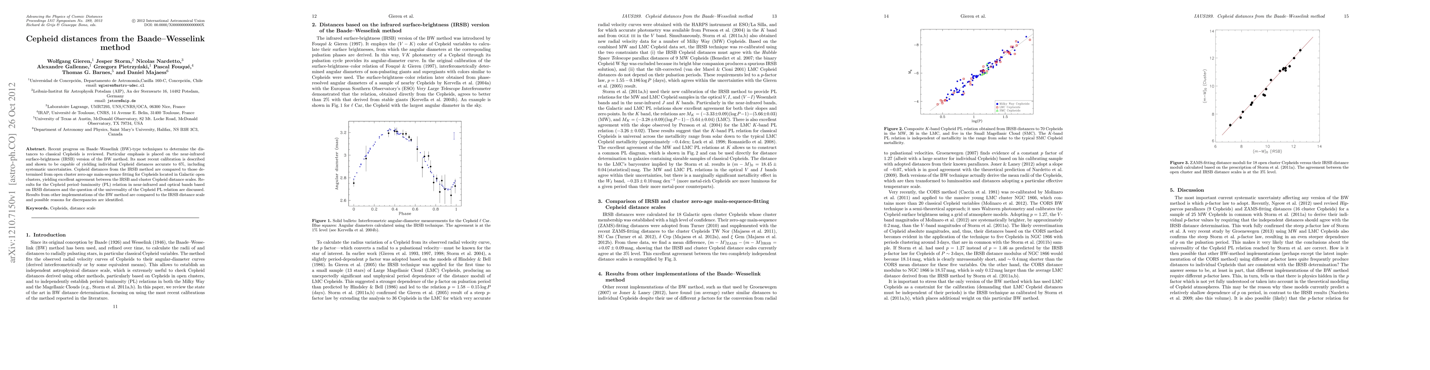 This paper reviews the Baade-Wesselink method, particularly the near-infrared surface-brightness version, and demonstrates its ability to yield Cepheid distances with 6% accuracy. It finds excellent agreement between IRSB distances and those from open cluster fitting, and discusses the Cepheid period-luminosity relation and discrepancies with other BW method implementations.